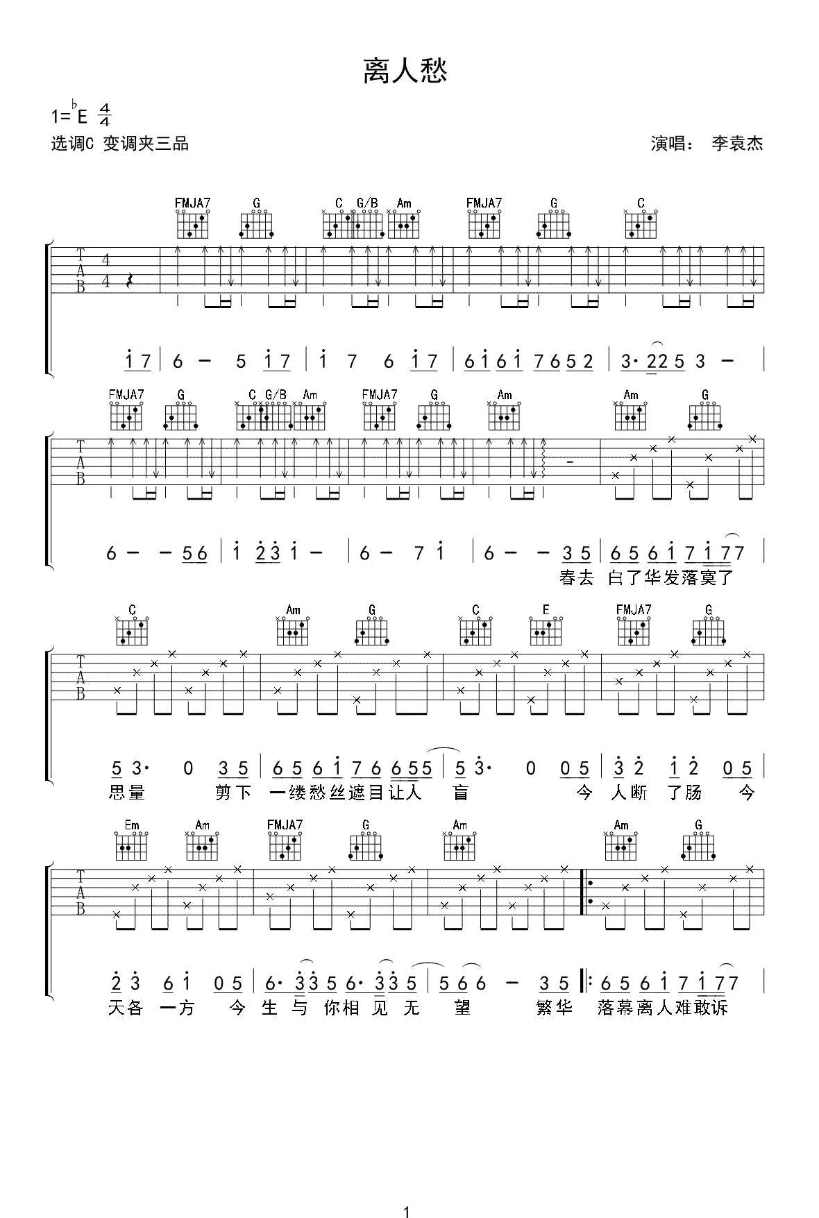 离人愁吉他谱 - 李袁杰 - 吉他弹唱谱