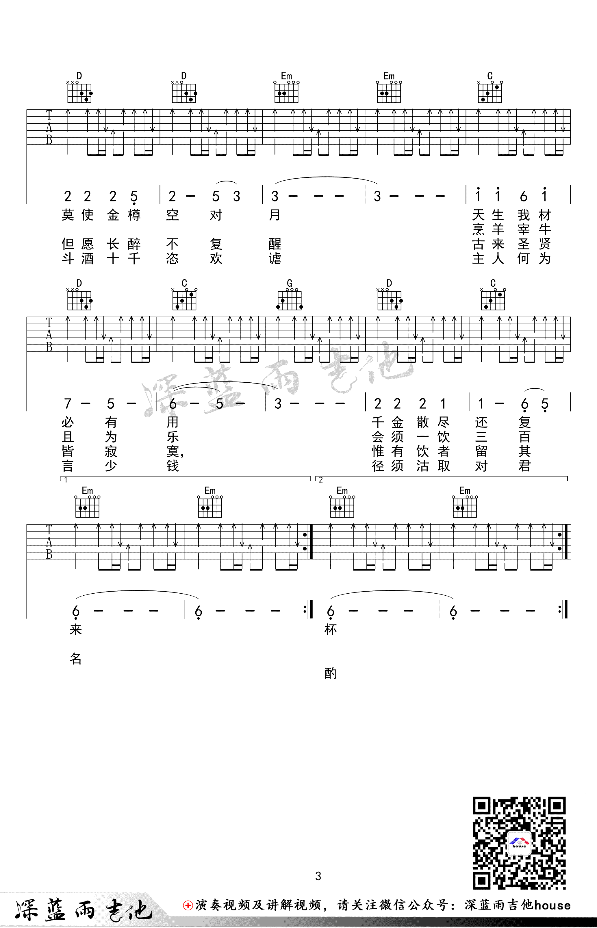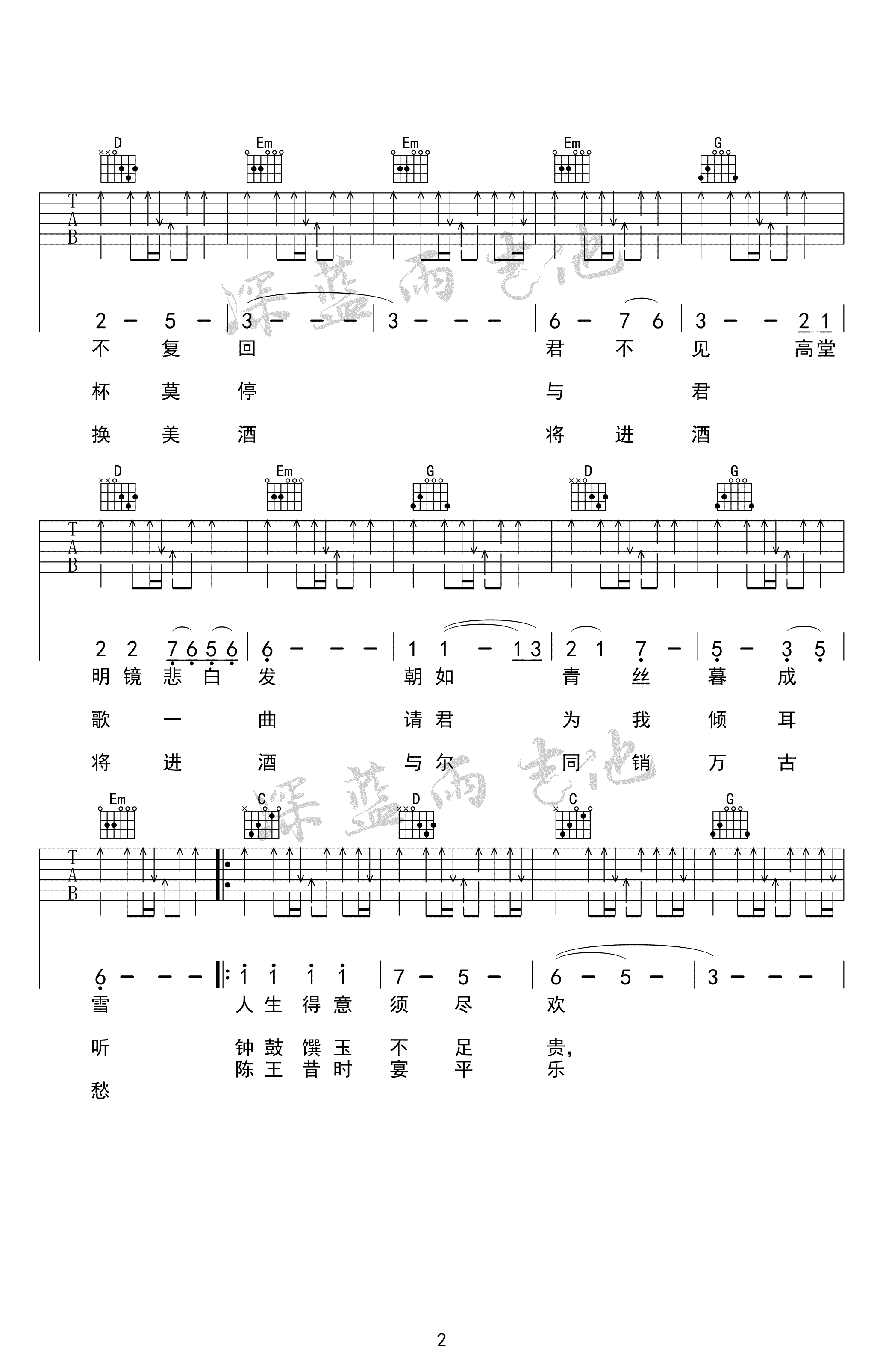 当前位置:琴谱网>吉他弹唱>将进酒