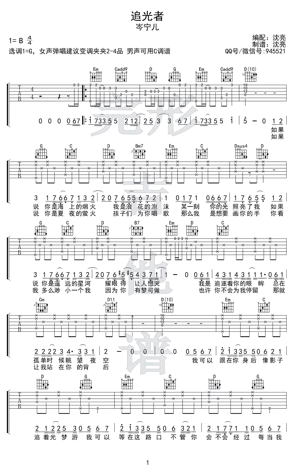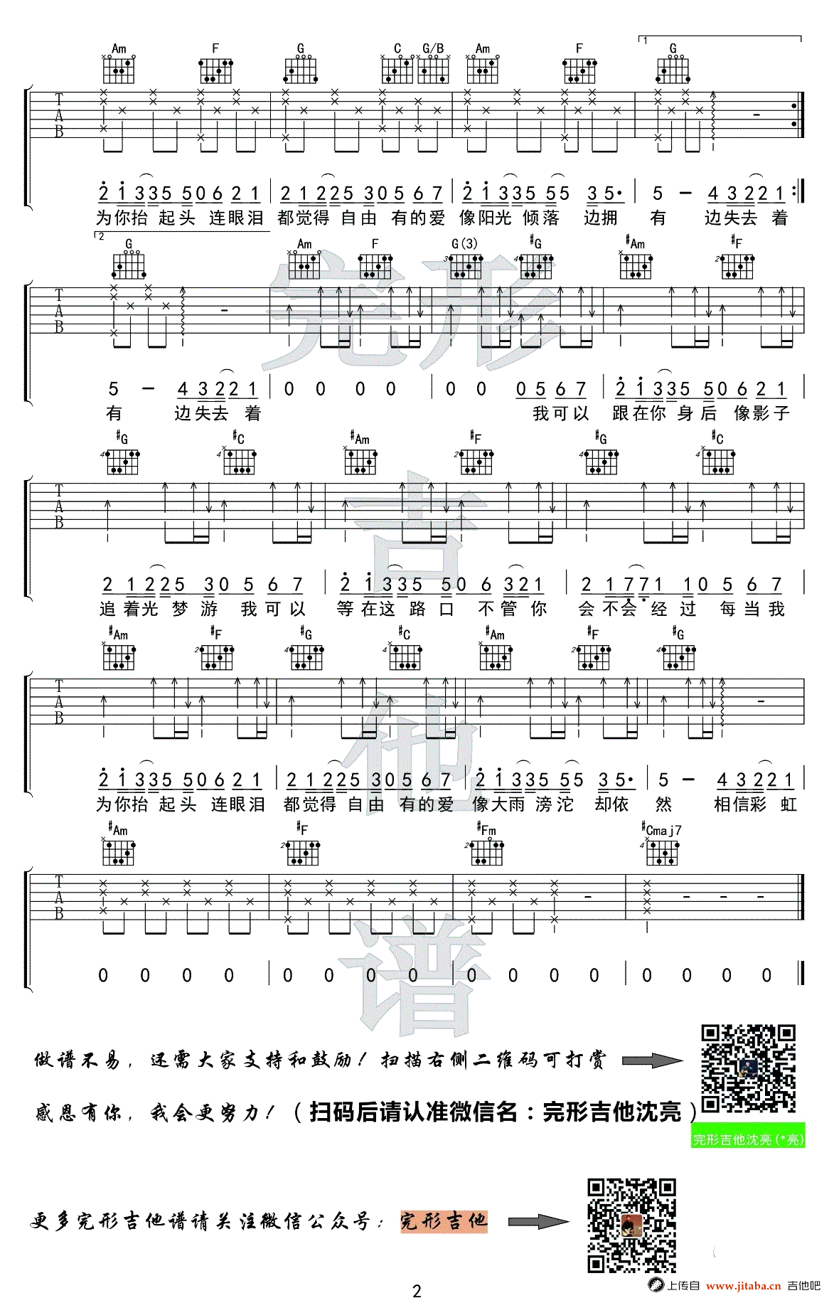 追光者吉他谱 - 追光者吉他弹唱示范演示 - 吉他弹唱谱