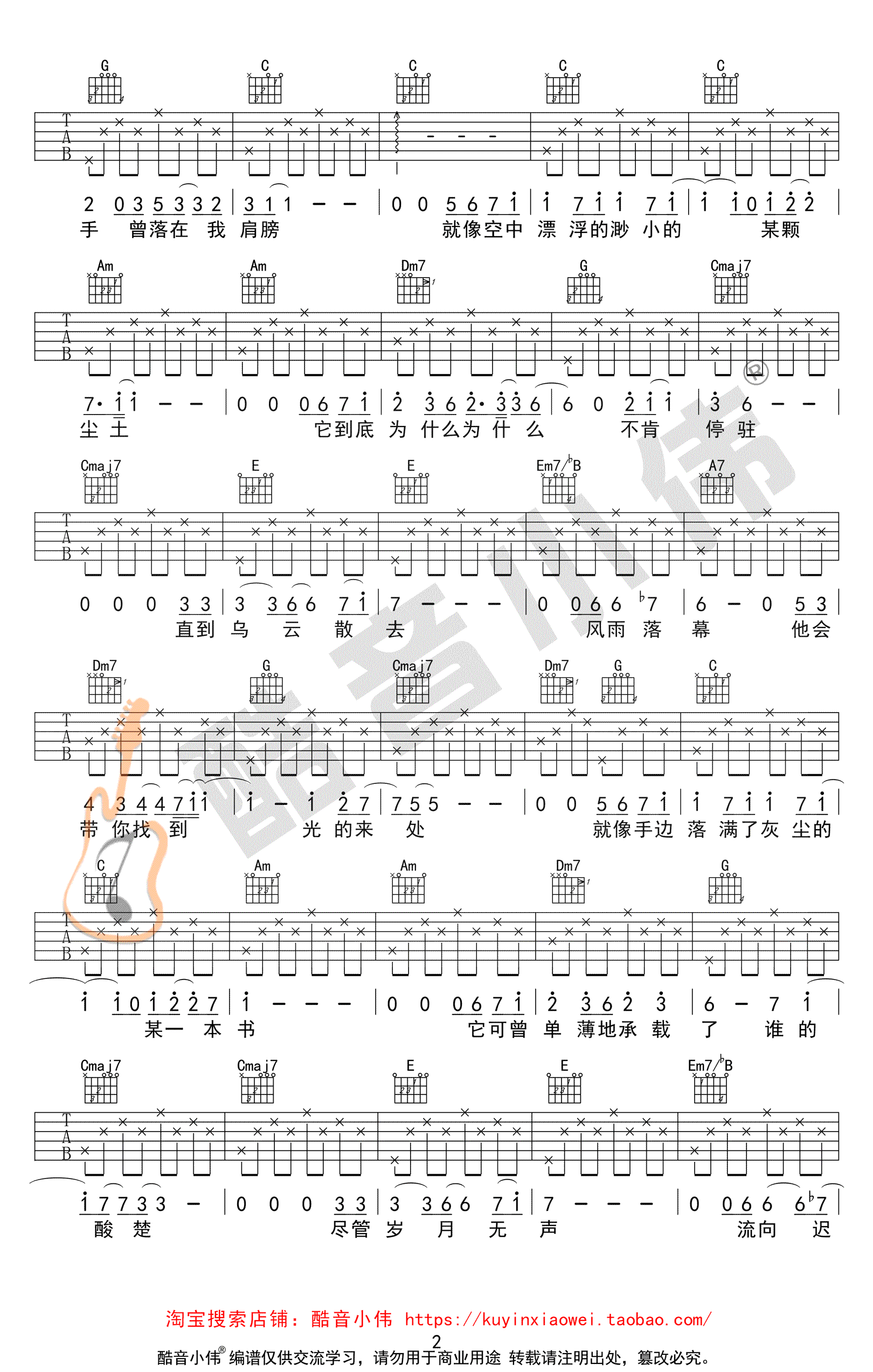 无问吉他谱 - 毛不易 - C调吉他弹唱谱
