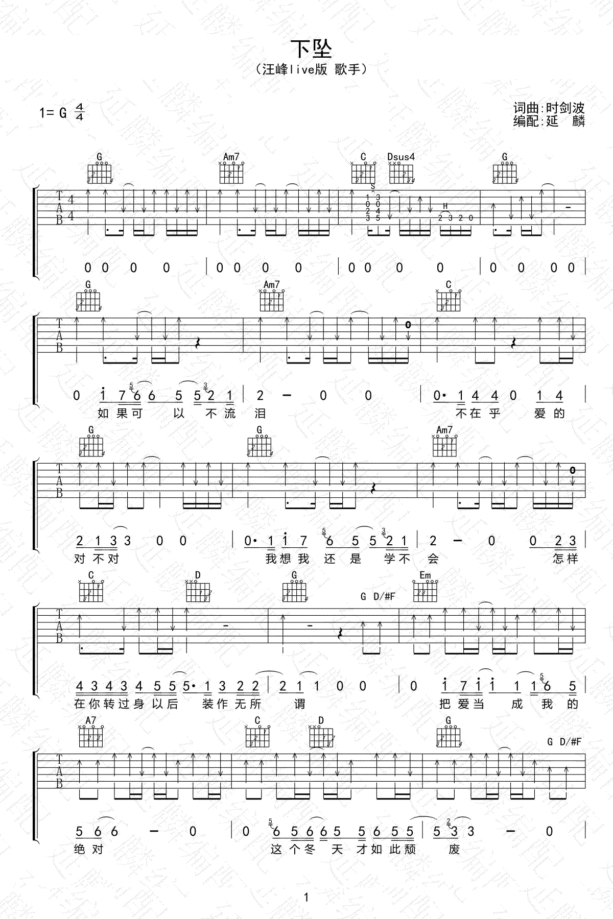 下坠吉他谱 - 汪峰 - G调吉他弹唱谱
