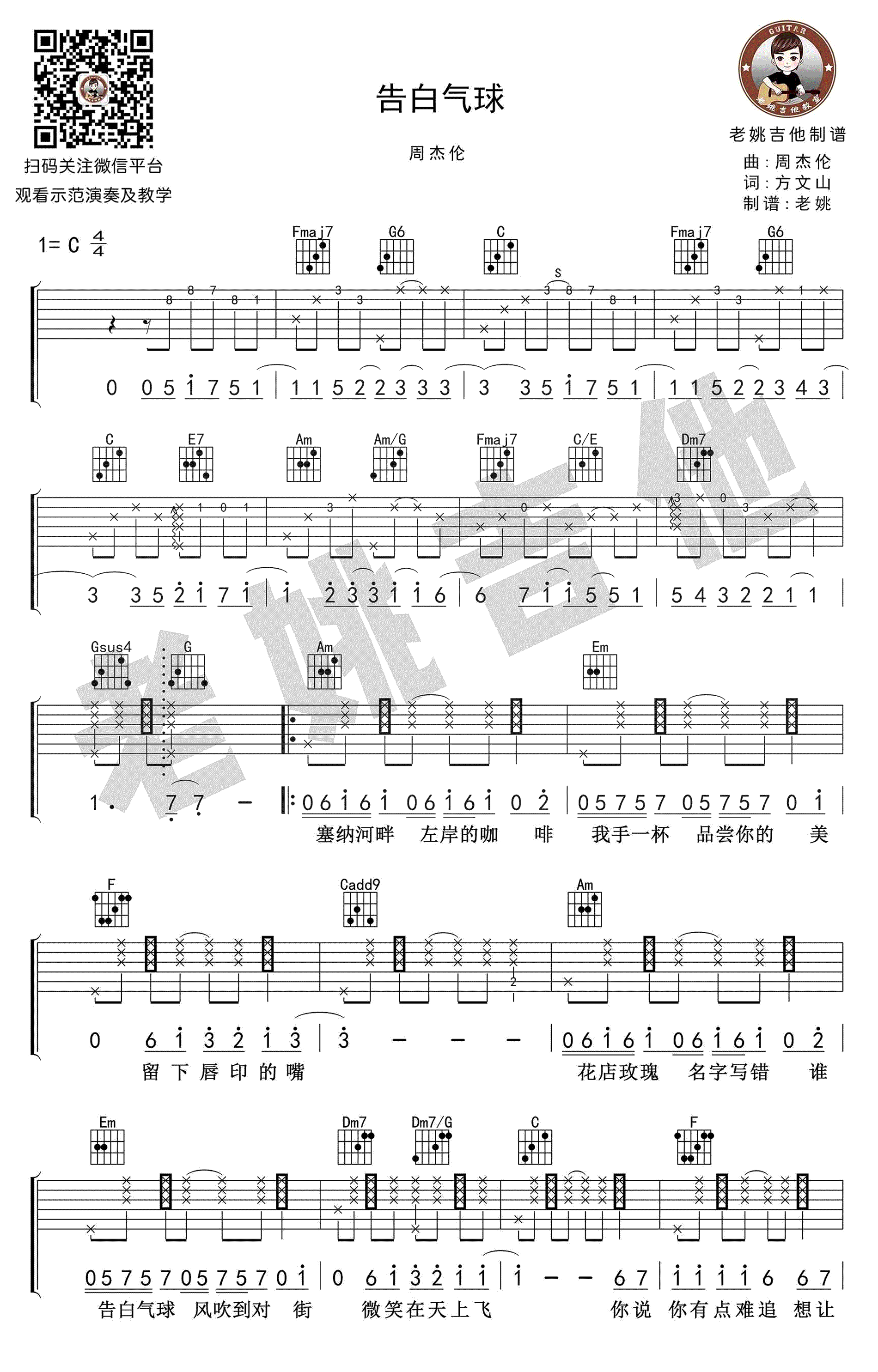 告白气球吉他谱 - 周杰伦 - C调吉他弹唱谱
