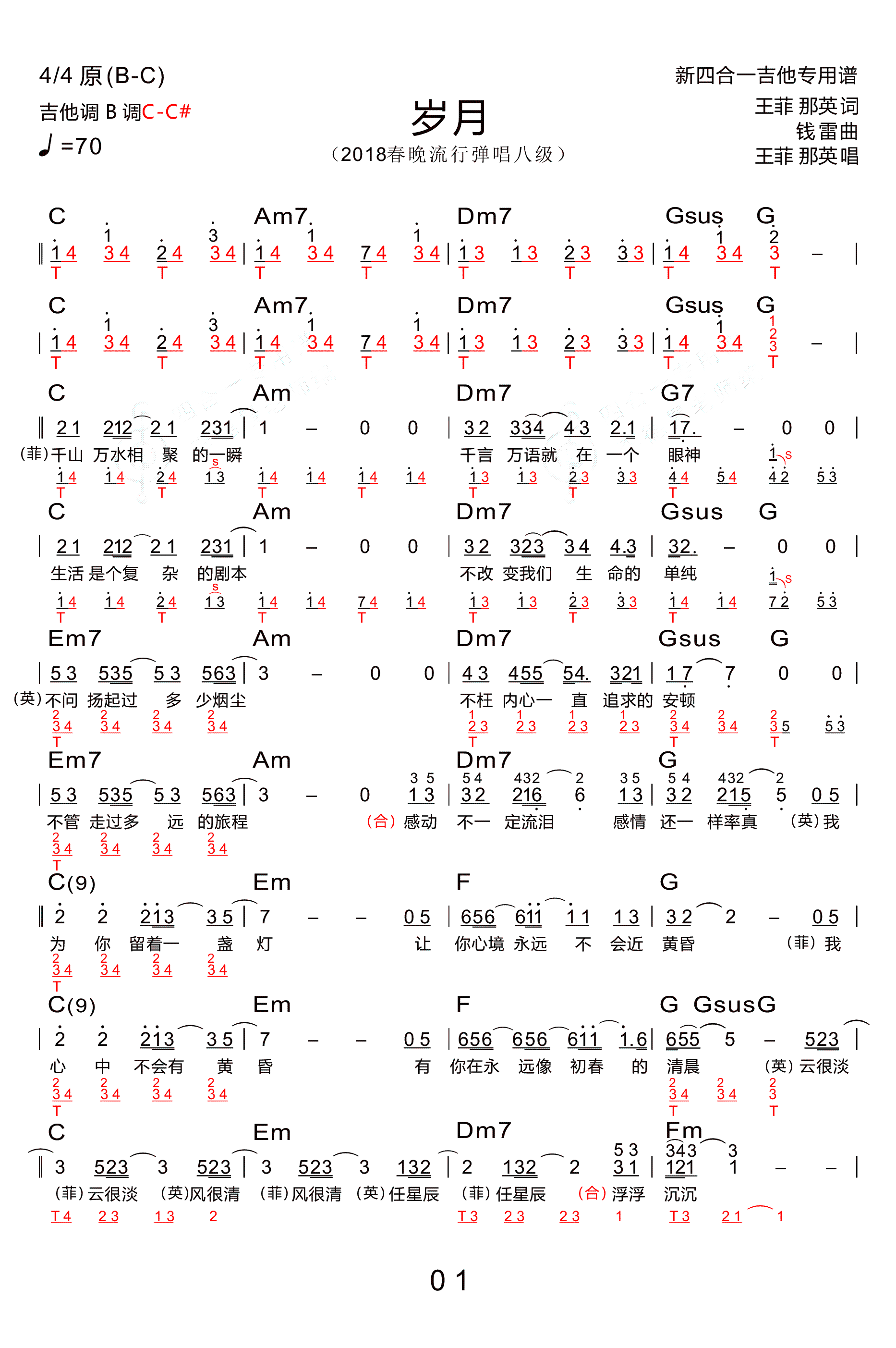 岁月吉他谱 - 王菲/那英 - 吉他弹唱谱