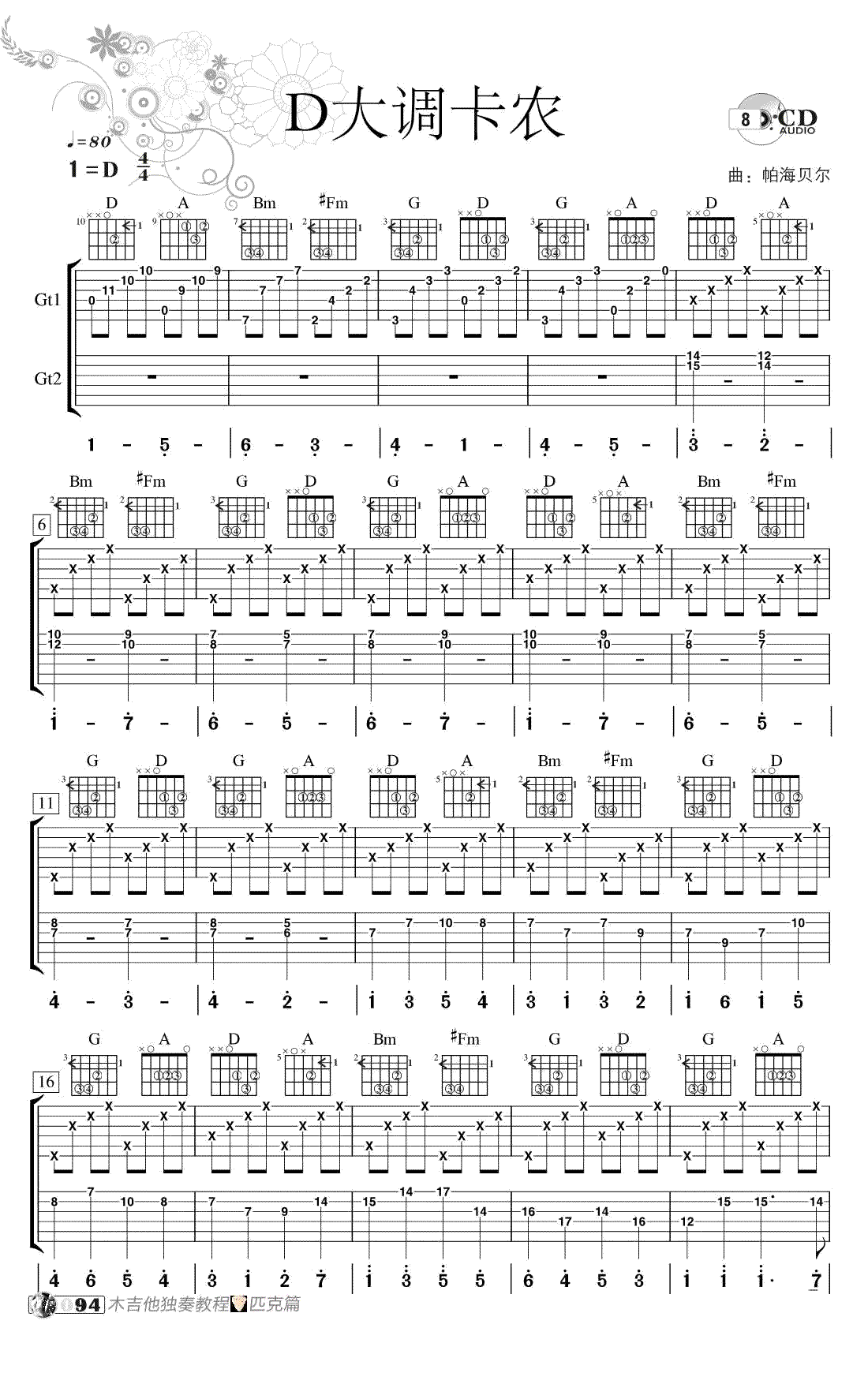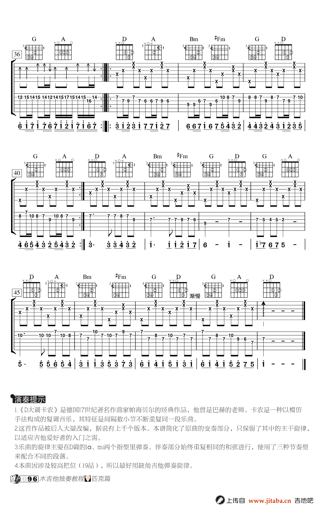 D大调卡农吉他谱 - 吉他独奏谱