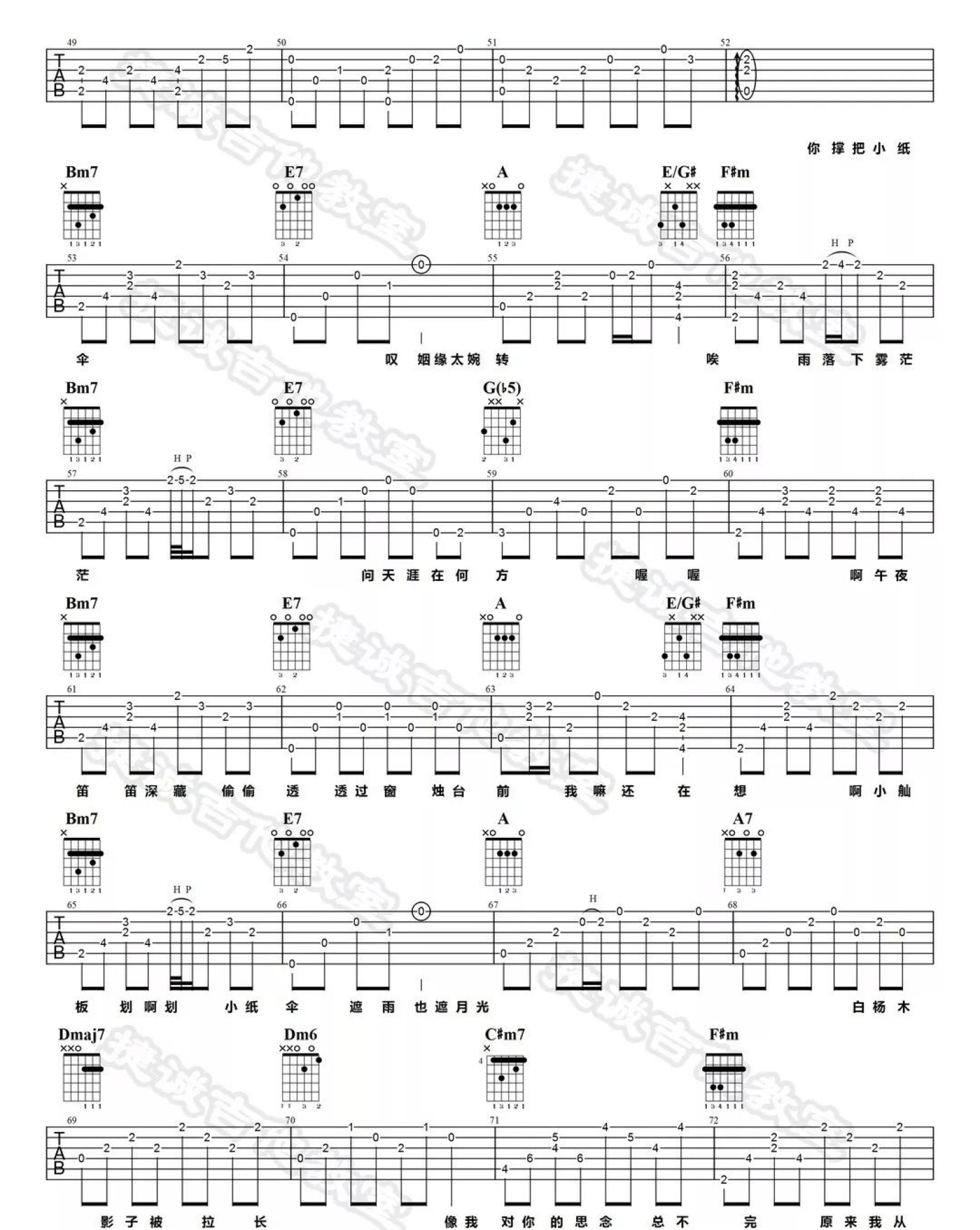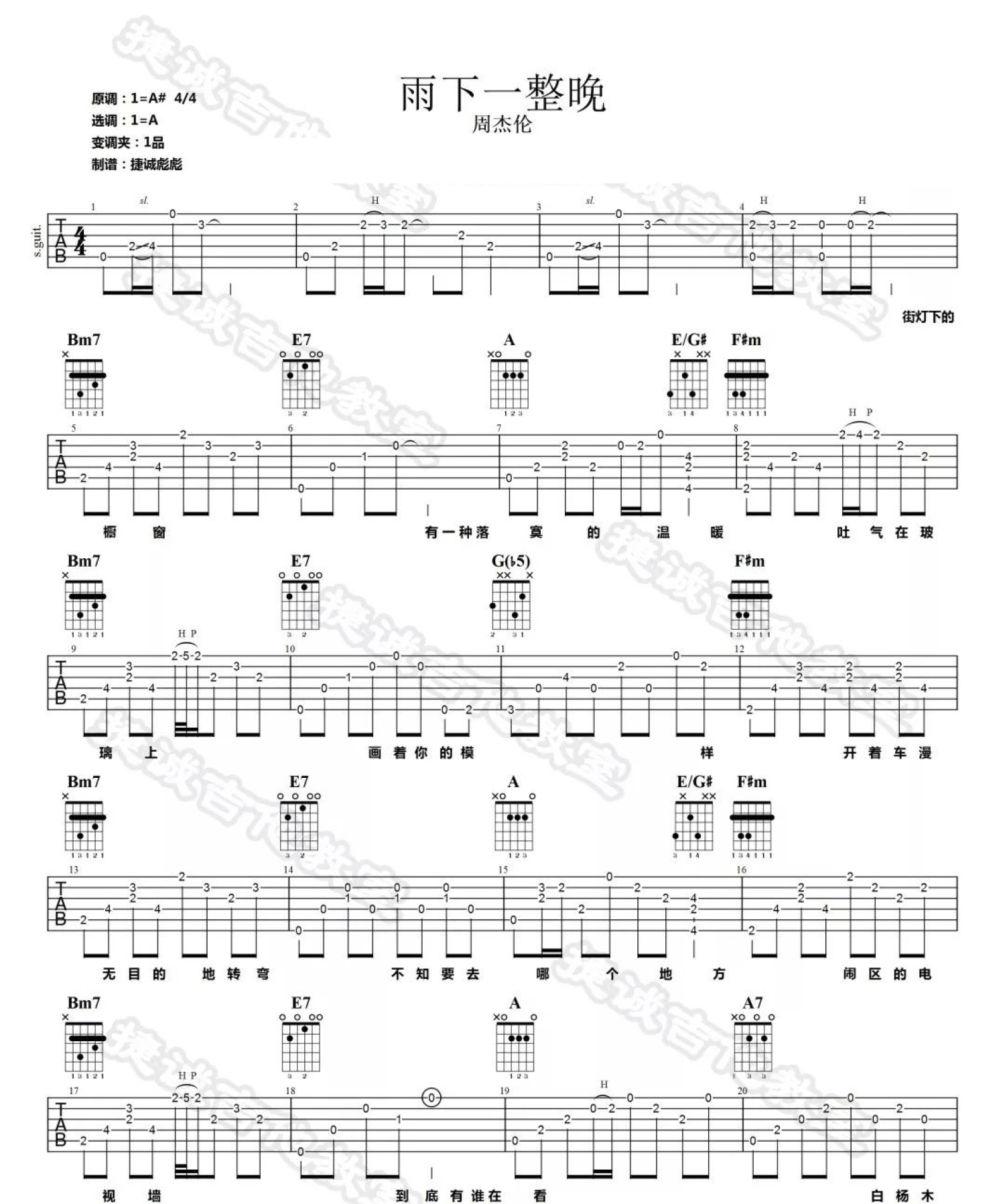 雨下一整晚吉他谱 - 周杰伦 - A调吉他独奏谱 - 原版