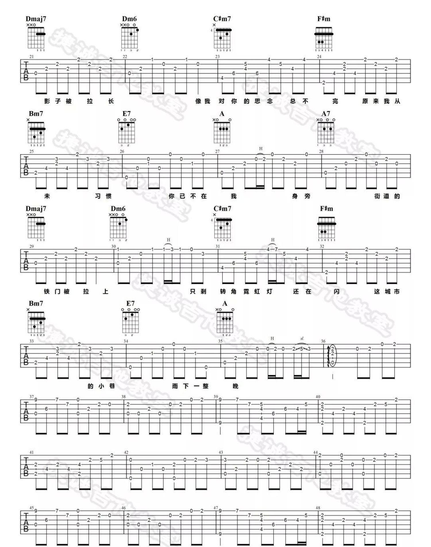 当前位置:琴谱网>吉他独奏>雨下一整晚