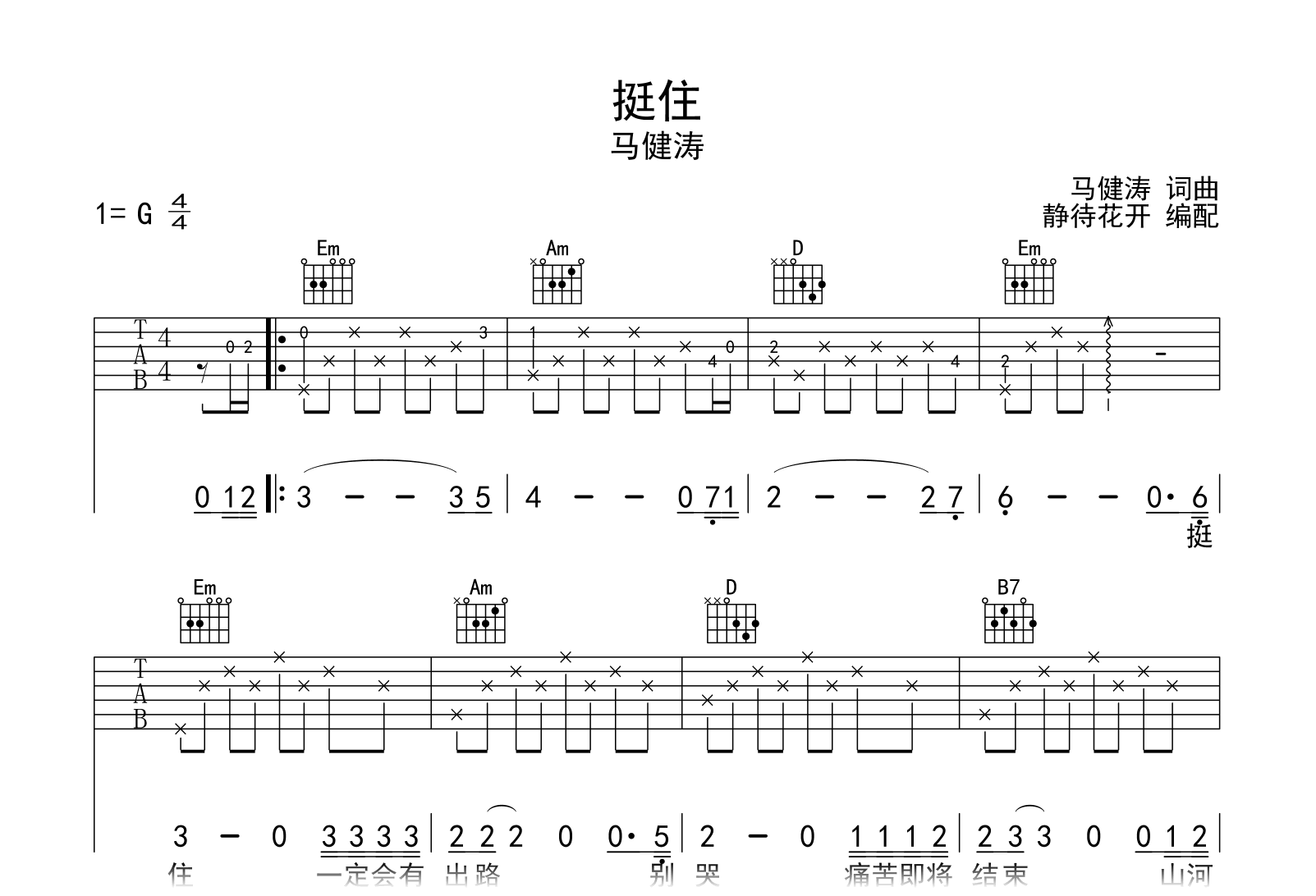 挺住吉他谱 - 马健涛 - G调吉他弹唱谱
