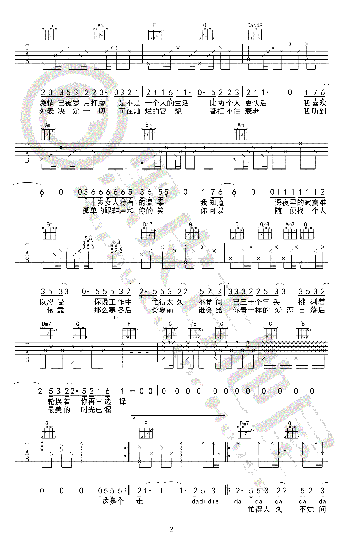 当前位置:琴谱网>吉他弹唱>三十岁的女人
