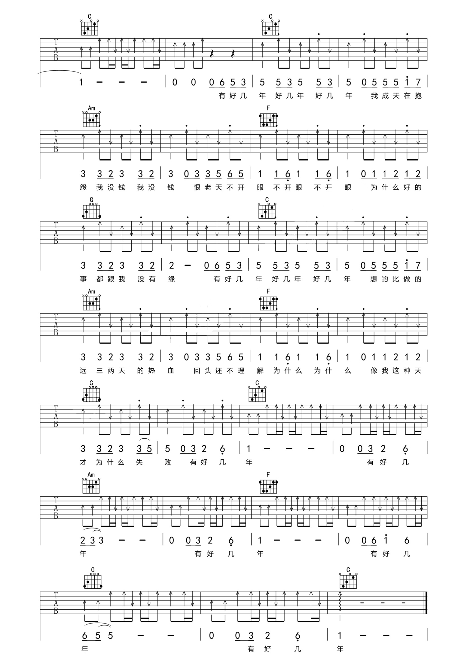 当前位置:琴谱网>吉他弹唱>好几年