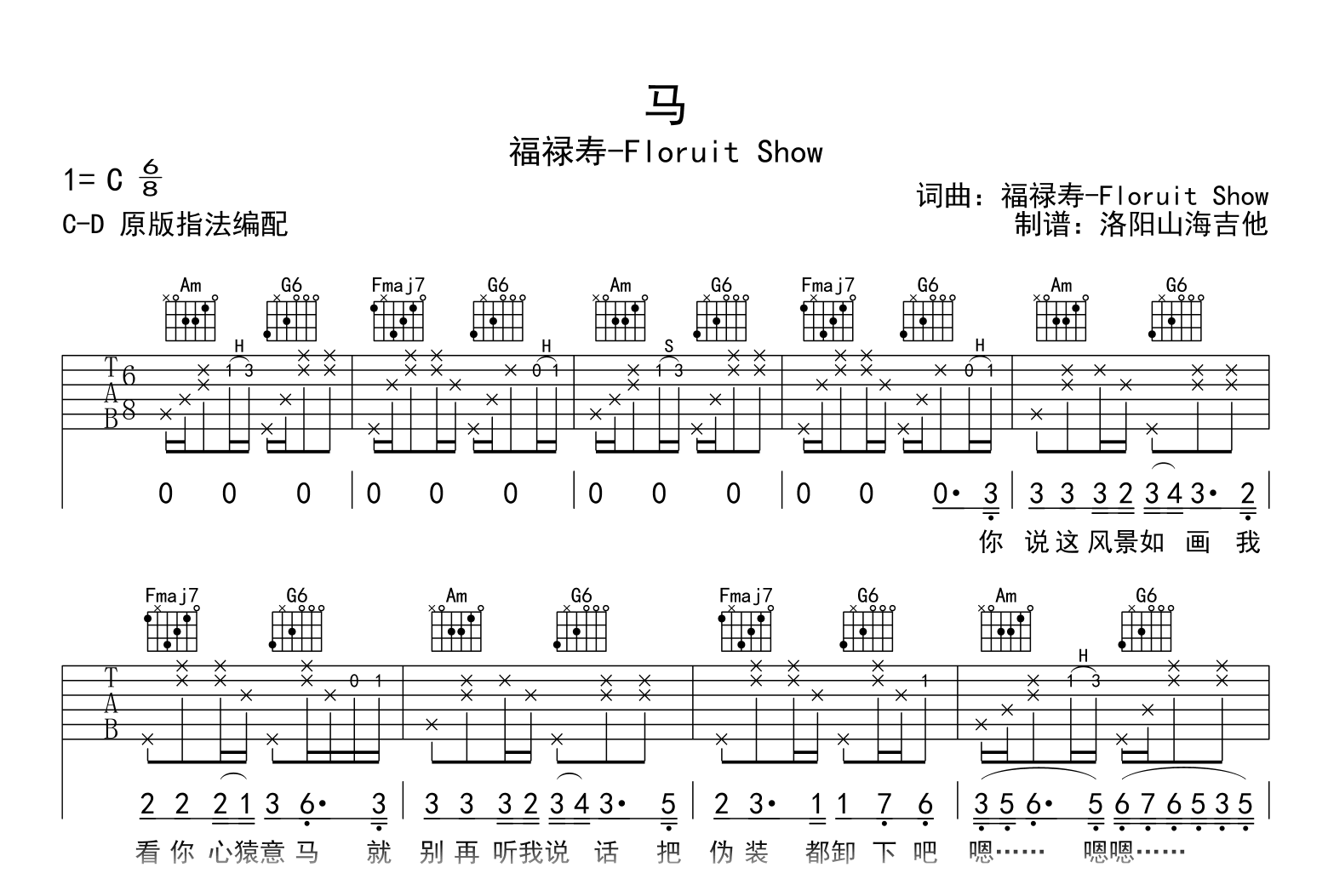 马吉他谱 - 福禄寿 - C调吉他弹唱谱 - 原版