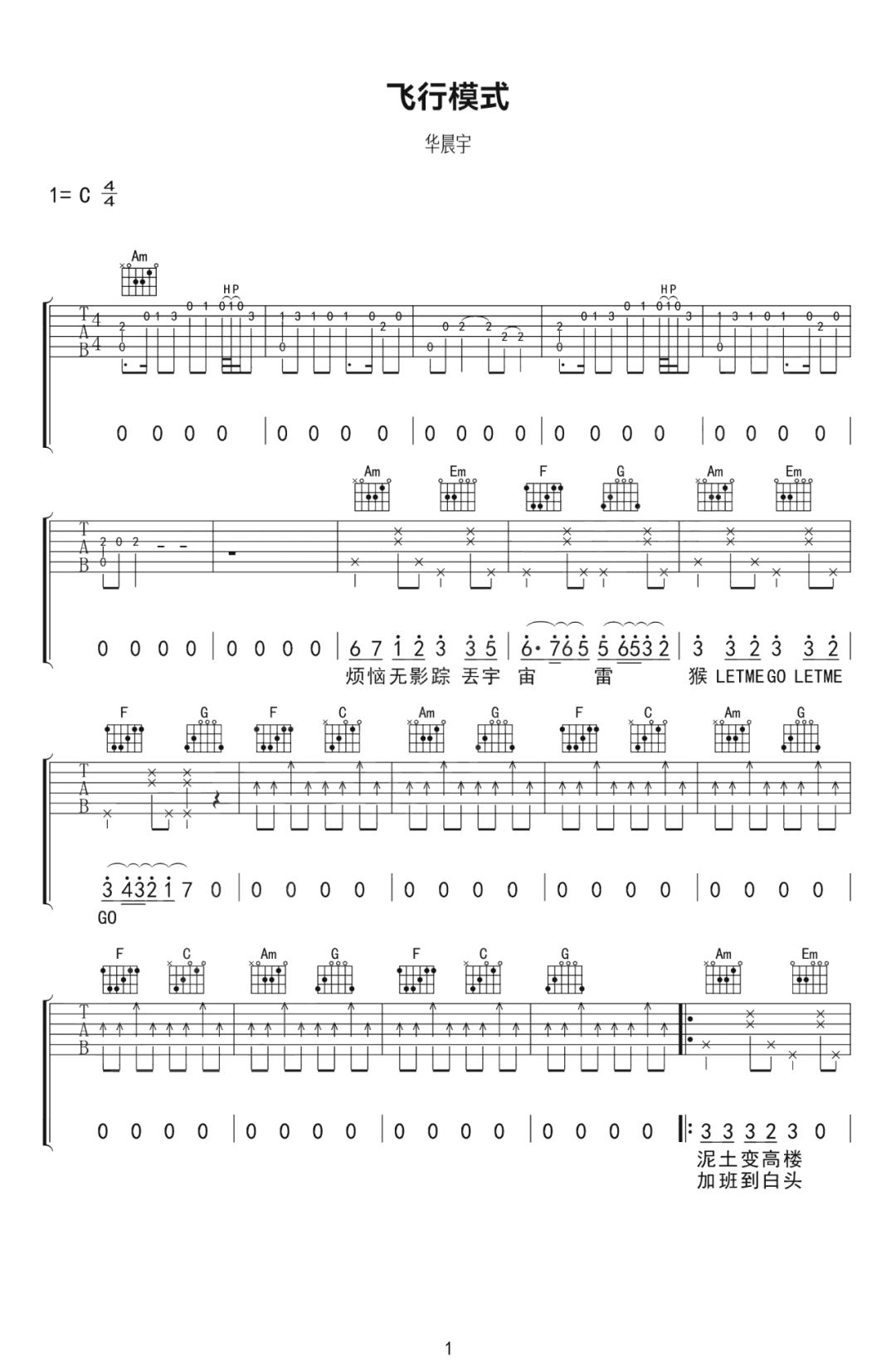飞行模式吉他谱 - 华晨宇 - C调吉他弹唱谱 - 原版