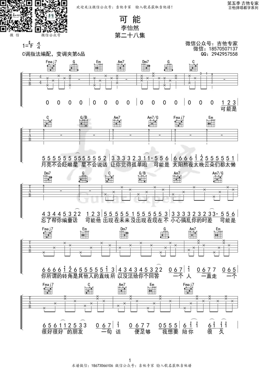 当前位置:琴谱网>吉他弹唱>可能