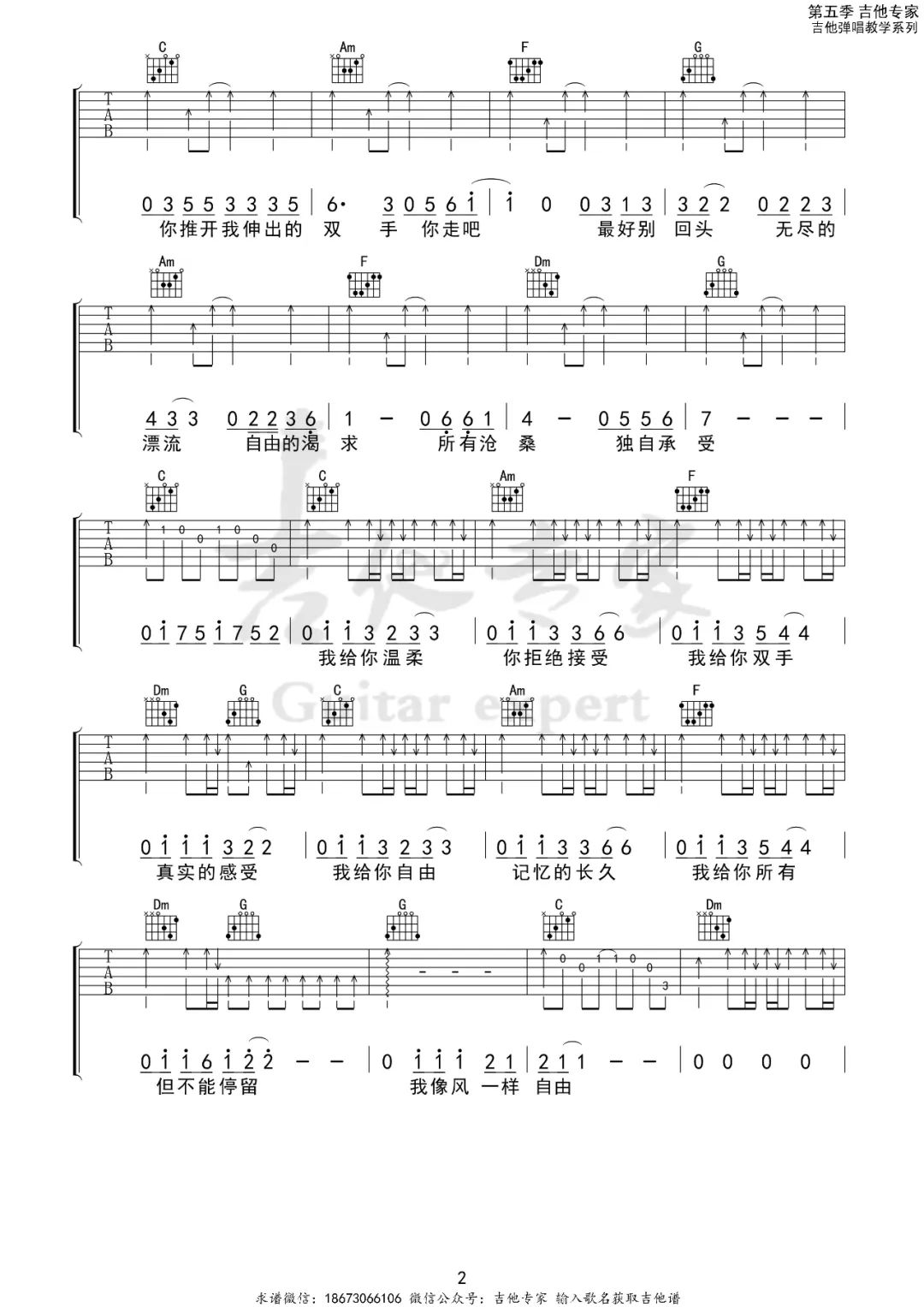 当前位置:琴谱网>吉他弹唱>像风一样自由