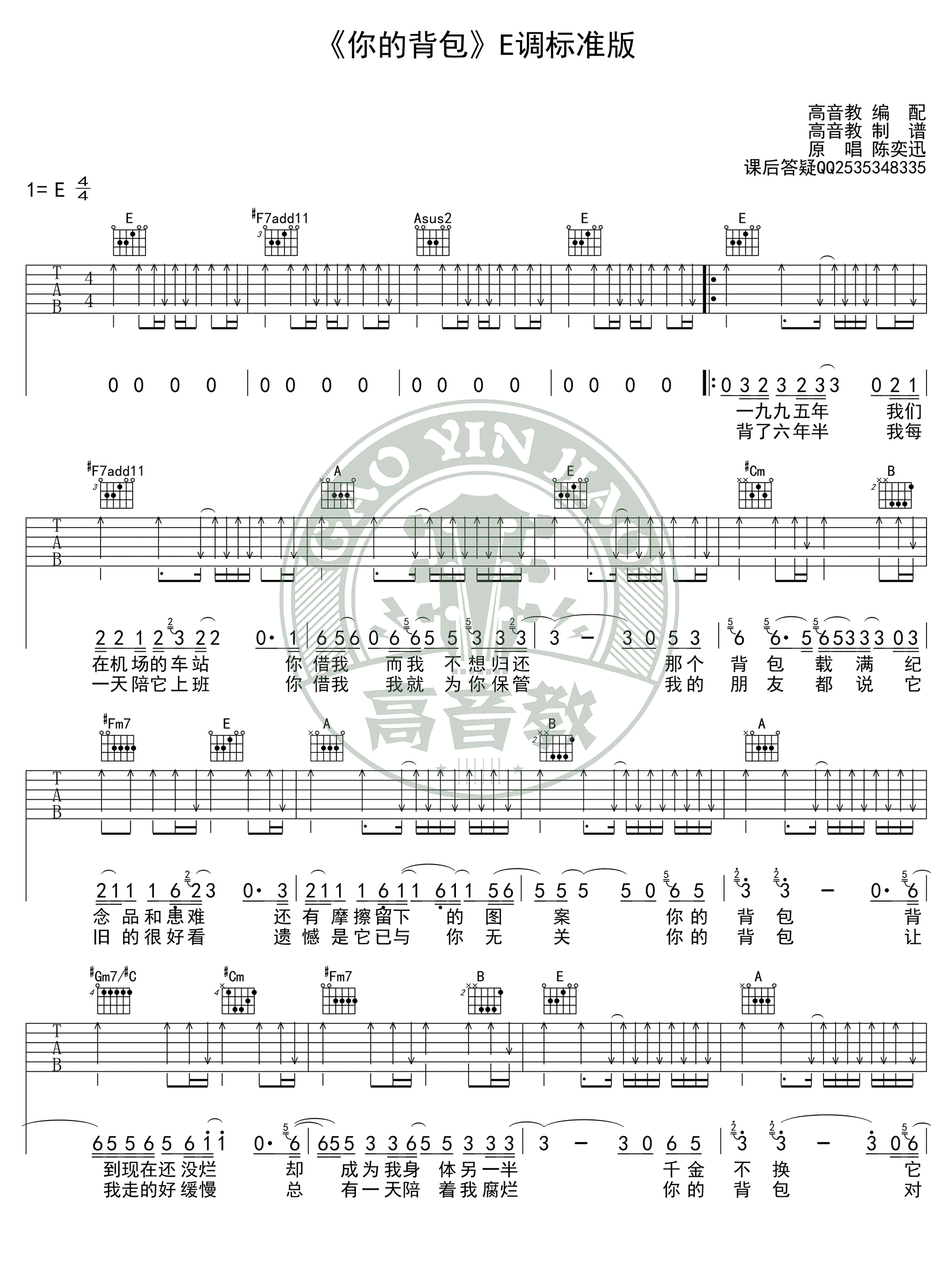 你的背包吉他谱 - 陈奕迅 - E调吉他弹唱谱