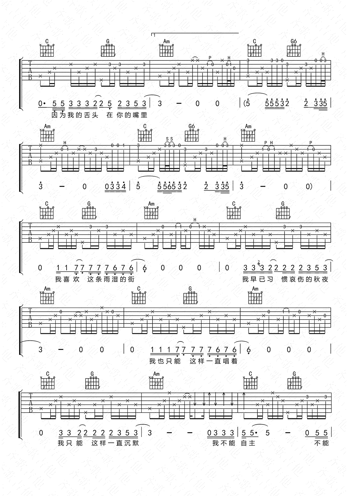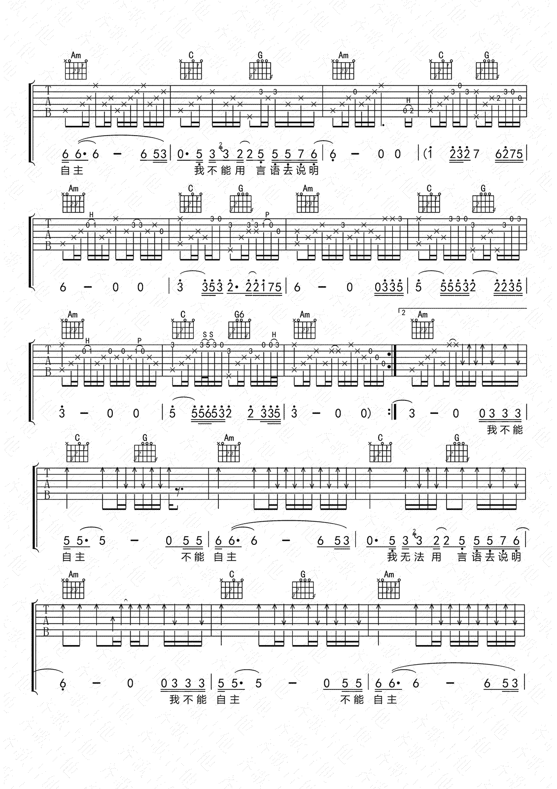 当前位置:琴谱网>吉他弹唱>不能自主