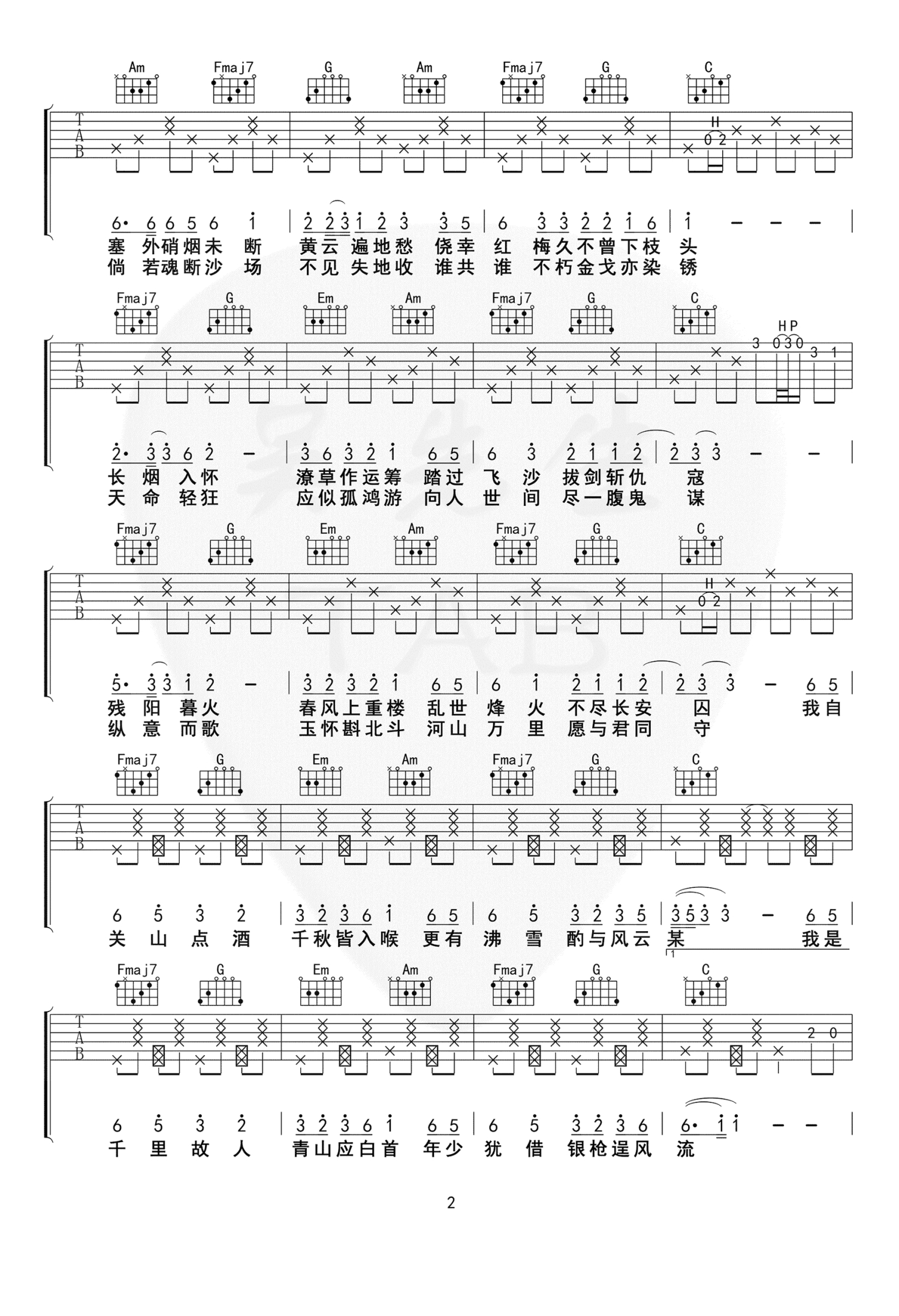 曲谱介绍: 等什么君《关山酒》吉他谱_C调吉他弹唱谱