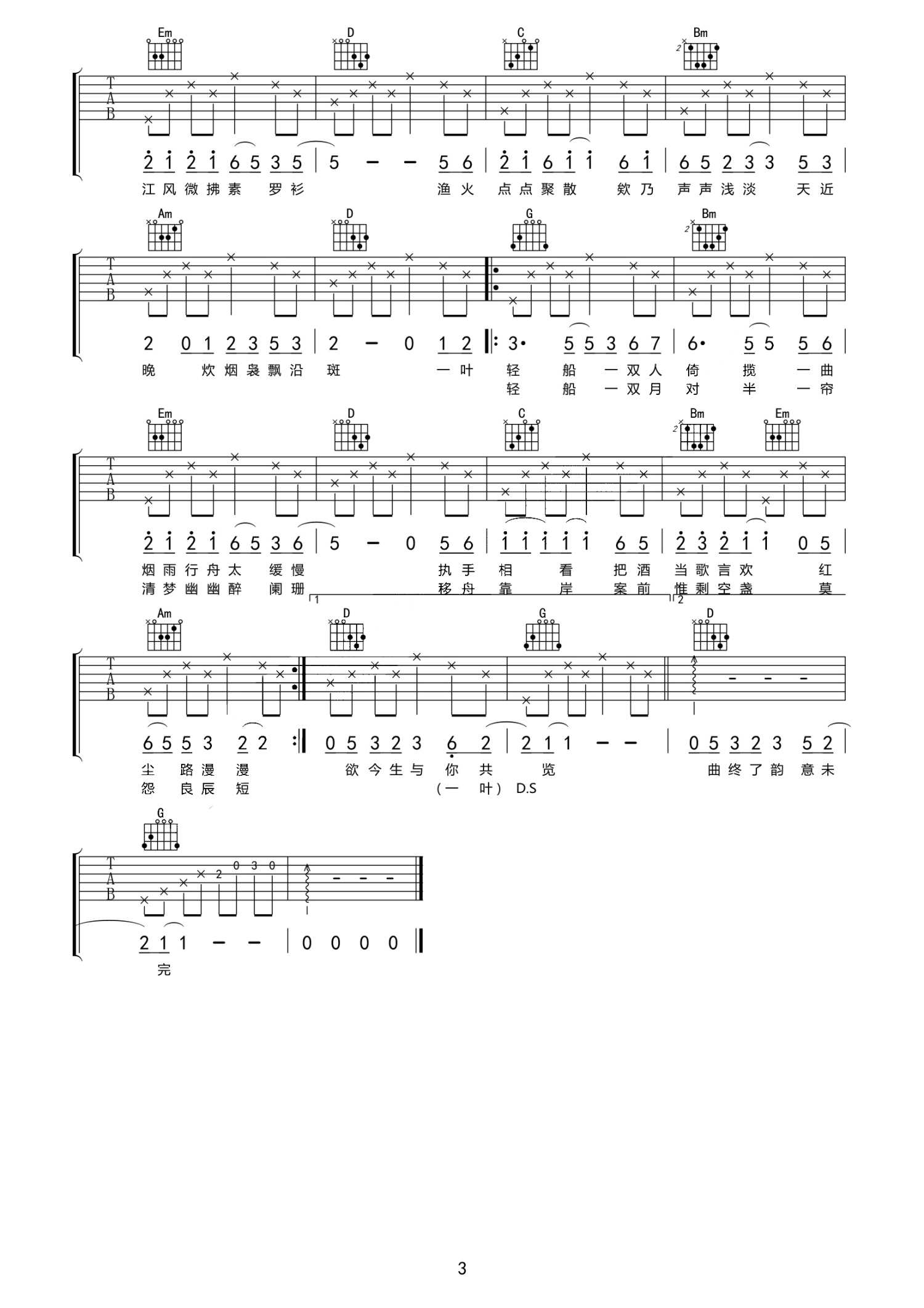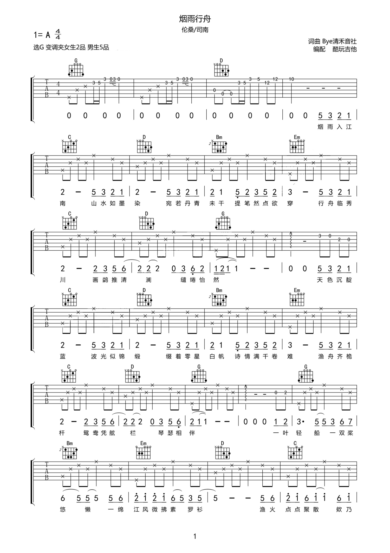曲谱介绍: 伦桑、司南《烟雨行舟》吉他谱_G调吉他弹唱谱