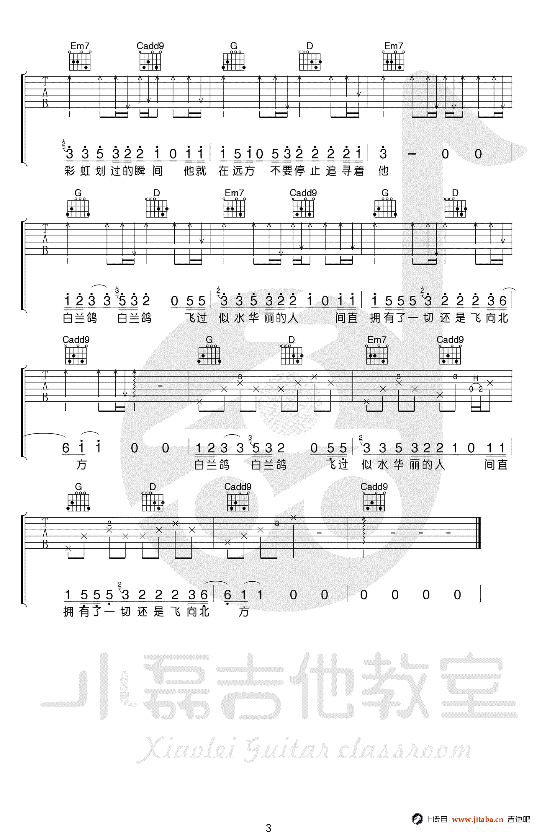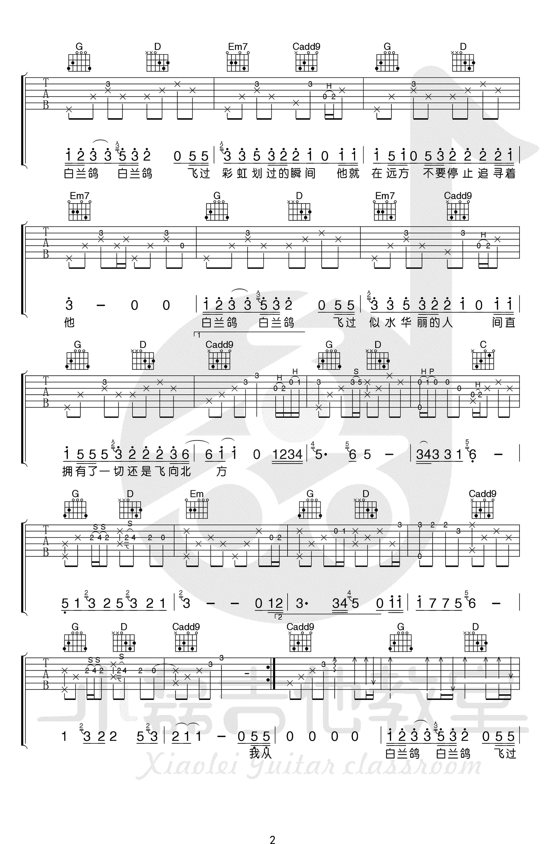 当前位置:琴谱网>吉他弹唱>白兰鸽巡游记