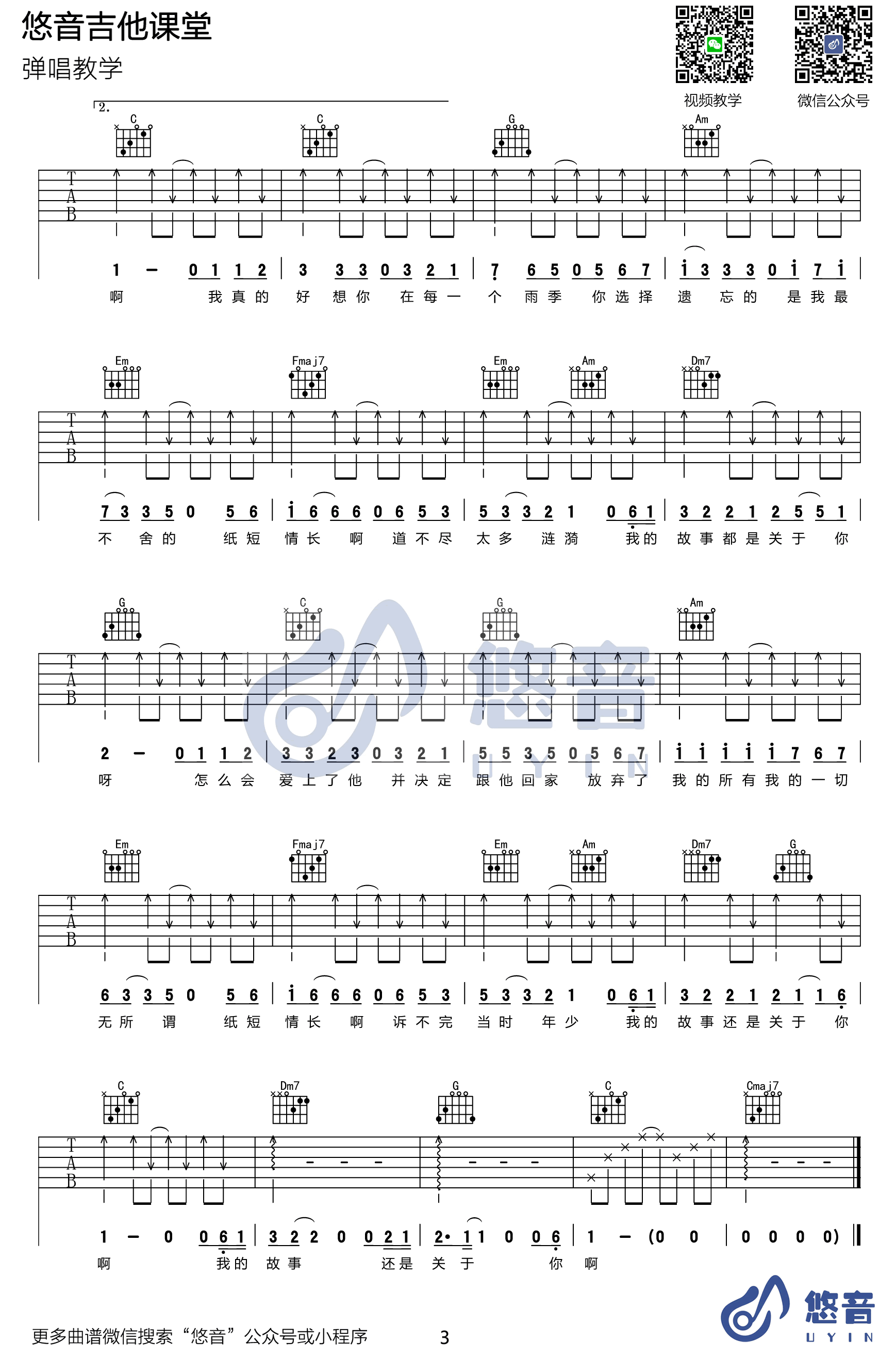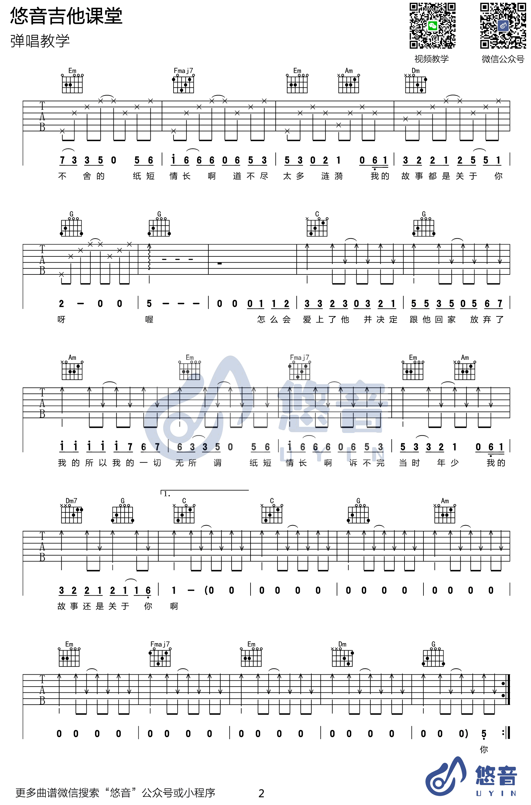 当前位置:琴谱网>吉他弹唱>纸短情长