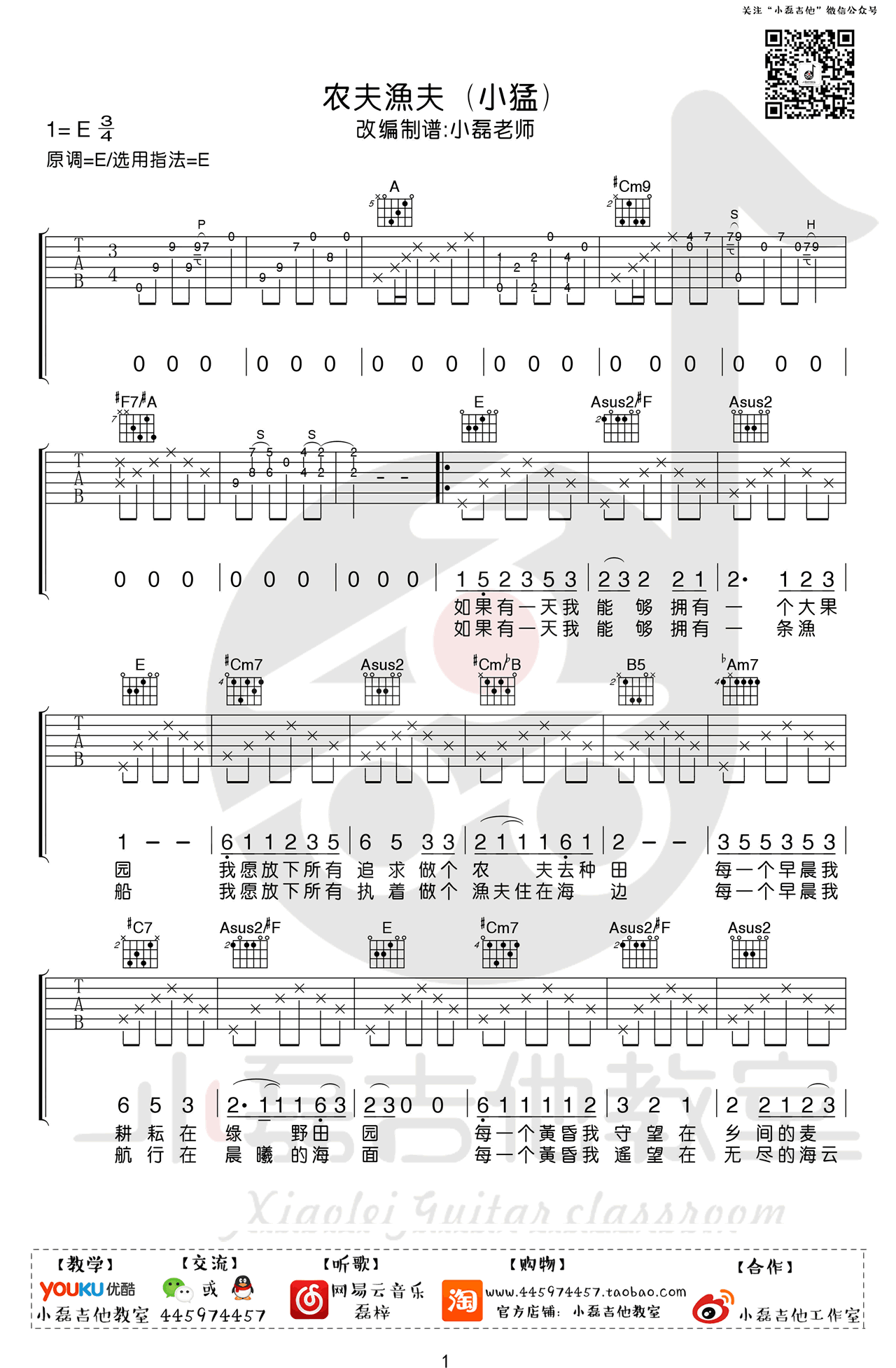 农夫渔夫吉他谱 - 小猛/大乔小乔 - 吉他弹唱谱