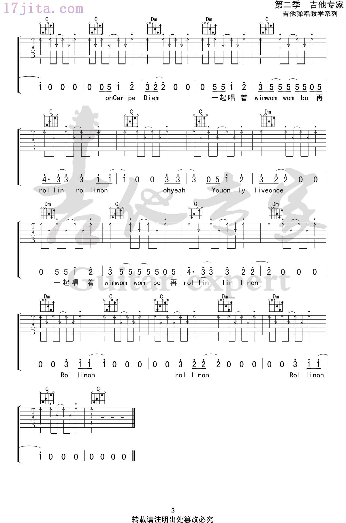 曲谱介绍: 《Rollin' On》吉他谱,来自台湾独立民谣乐队的椅子乐团的一首歌曲,Rollin' On六线谱,C调简单版,三张弹唱图片谱,吉他专家编配出品,17吉他网更新上传。 《乐队的夏天》第三期播出后,椅子乐团演唱的这首《Rollin'on》晋升为不少乐迷的晚安小夜曲,温暖舒适又不失力量的歌词更是疗愈了乐迷受伤的心灵,给予大家伙伴般的温暖。