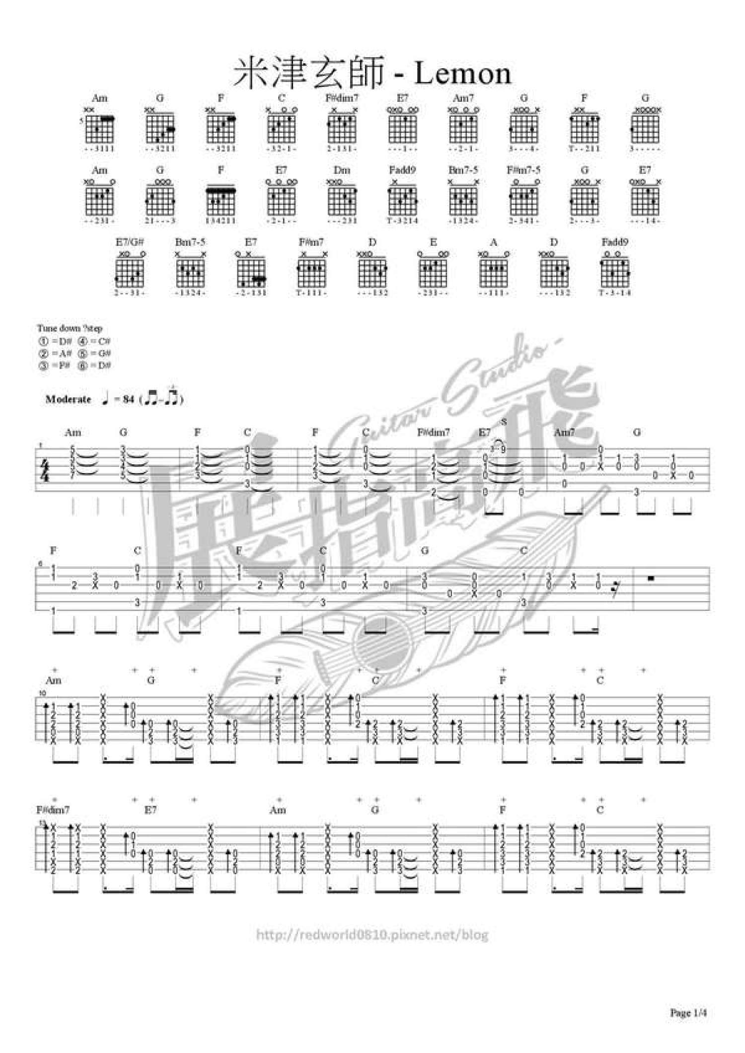 lemon吉他谱 - 米津玄师 - 吉他独奏谱