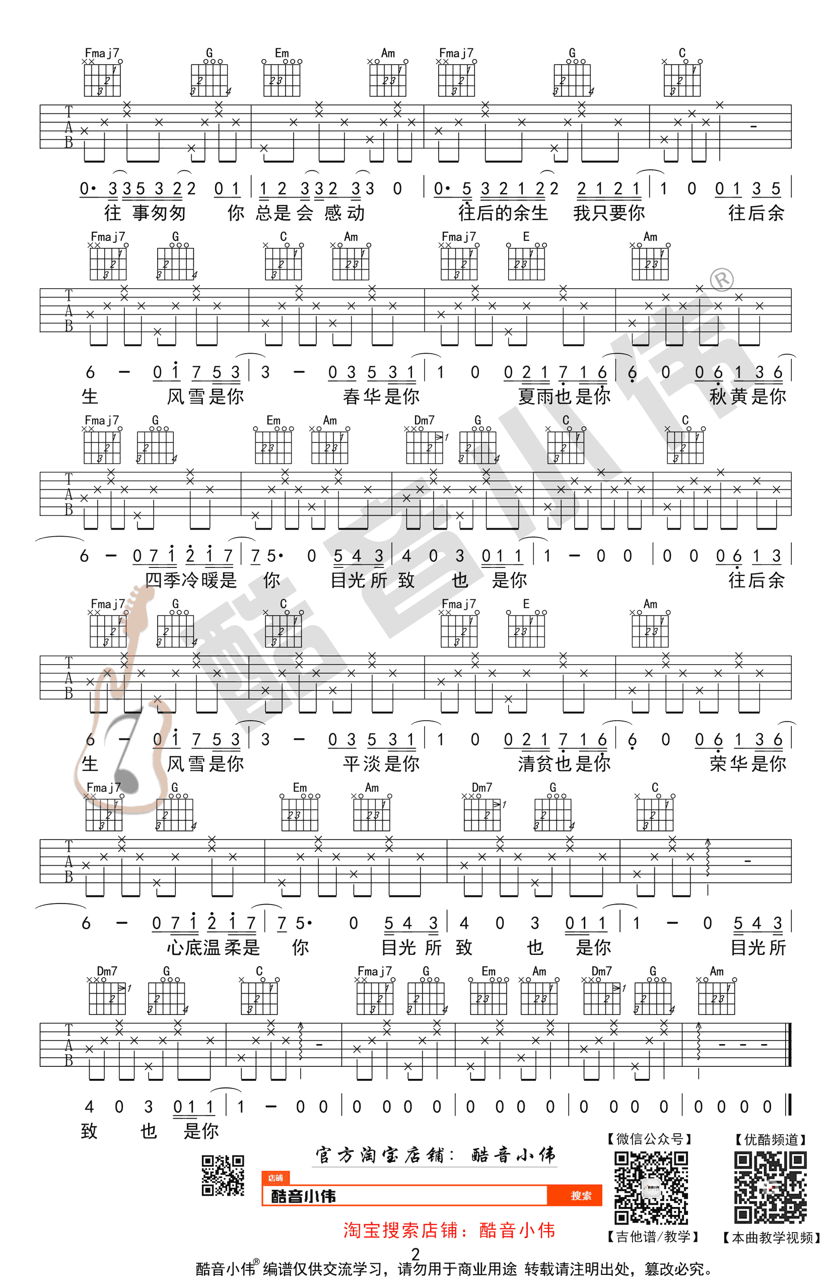 往后余生吉他谱 - 吉他教学 - C调吉他弹唱谱 - 原版