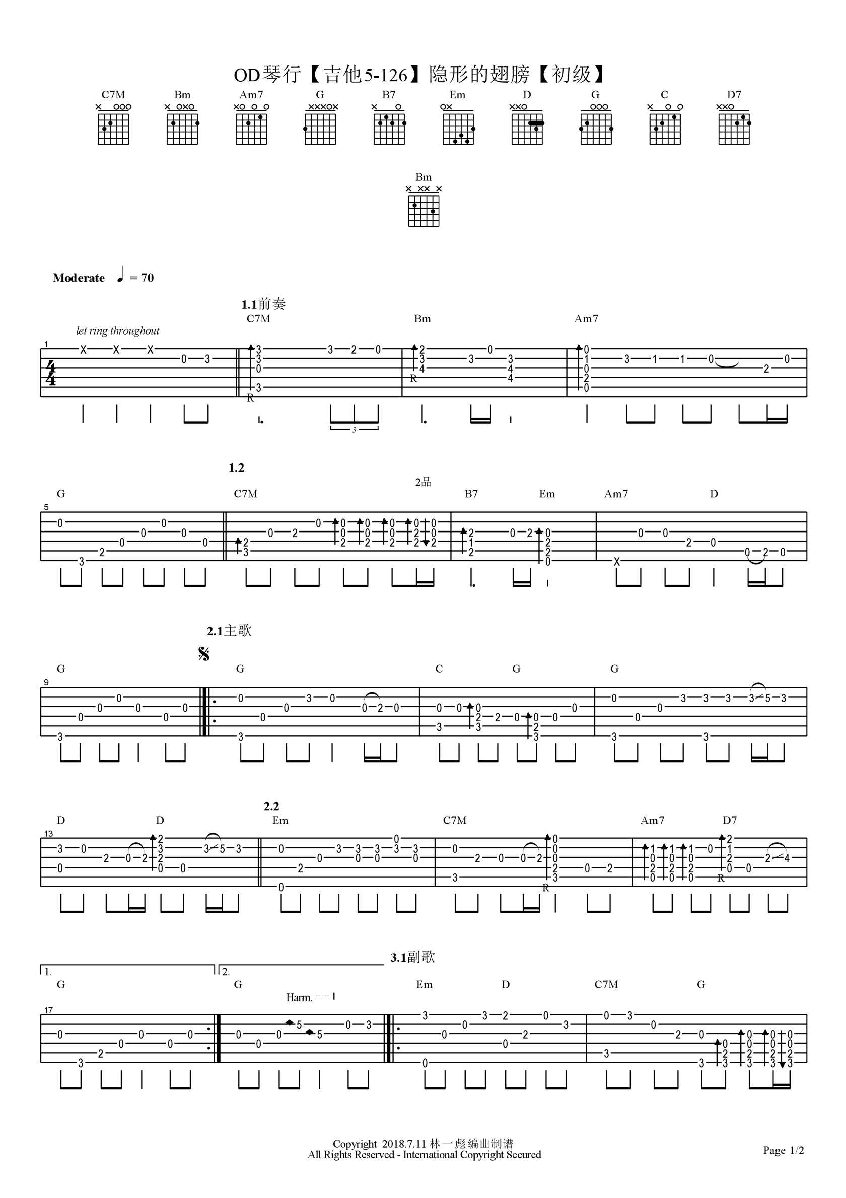 曲谱介绍: 隐形的翅膀指弹吉他谱,张韶涵一首代表歌曲改编,隐形的翅膀吉他独奏谱,初级版本编配,高清图片谱,感谢OD琴行出品,91吉他谱网站上传。 旋律最美的励志经典歌曲,给人希望、温暖与安定的力量,鼓励人们要坚强地面对人生。愿你带上隐形的翅膀,能够一直走下去!