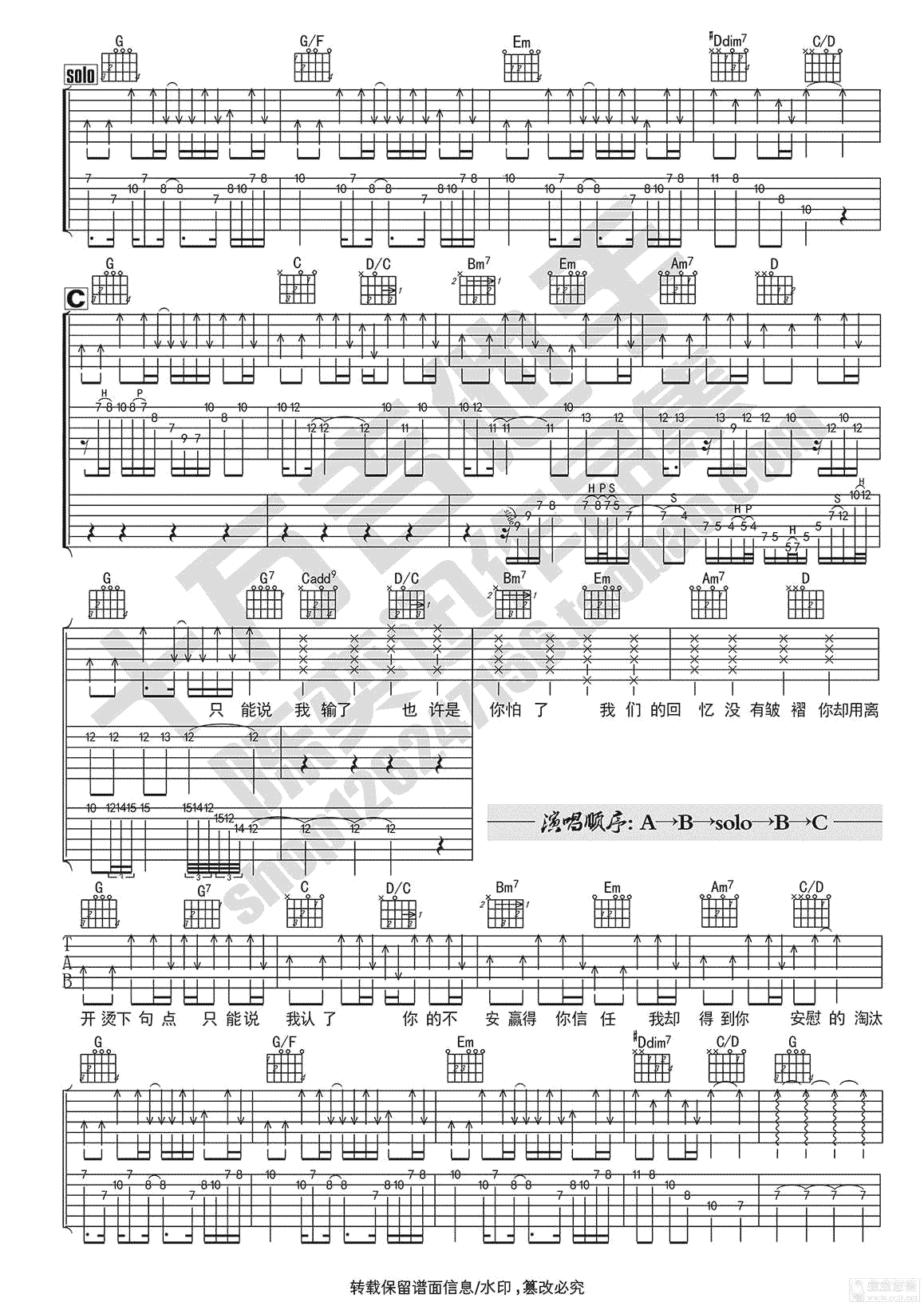 当前位置:琴谱网>吉他弹唱>淘汰