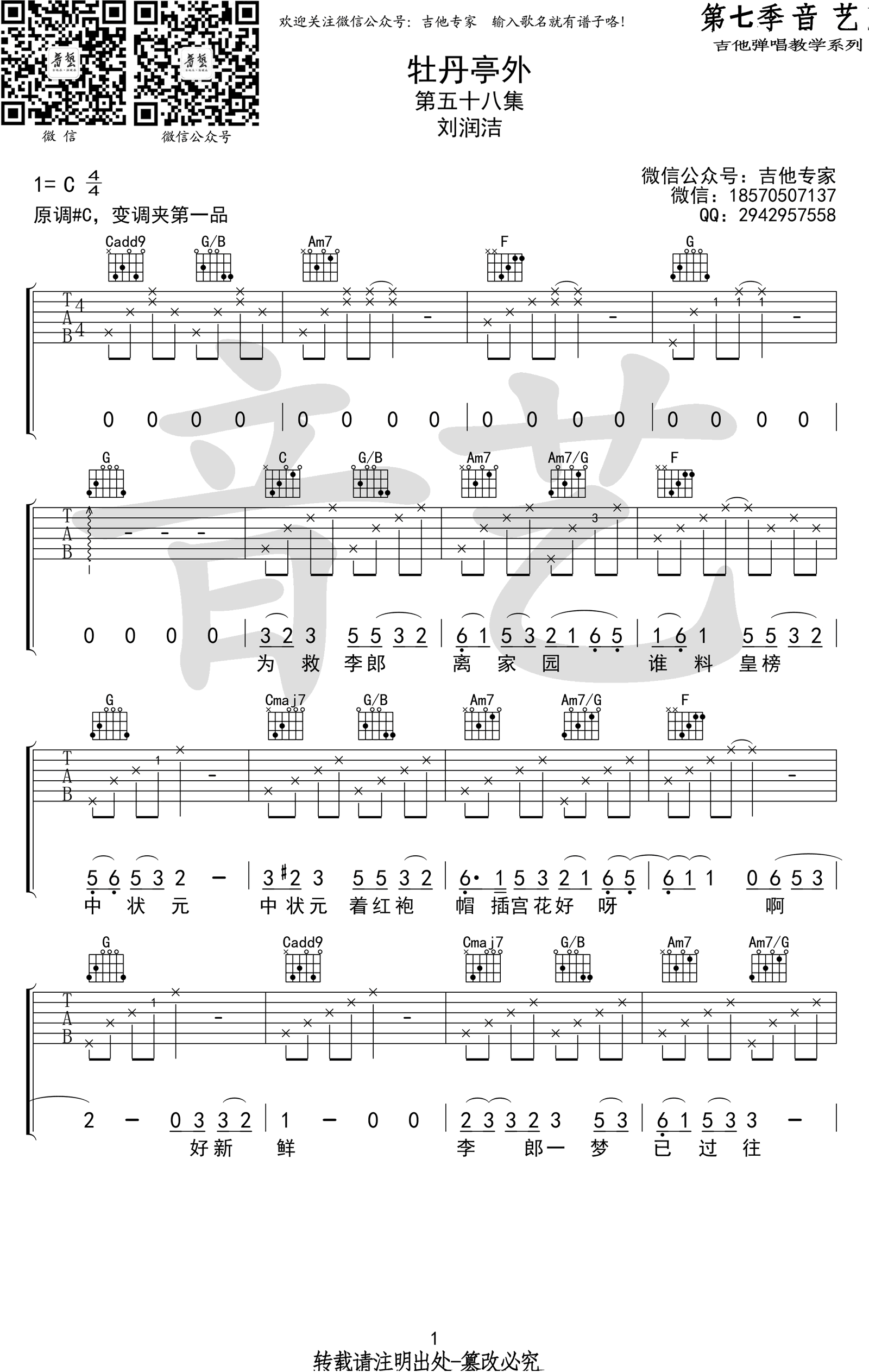 牡丹亭外吉他谱 - C调吉他弹唱谱