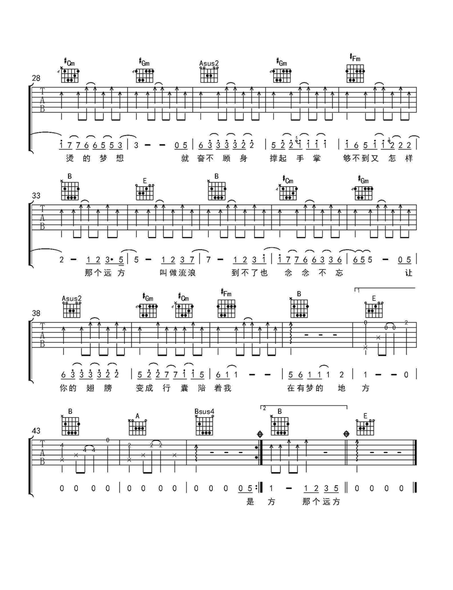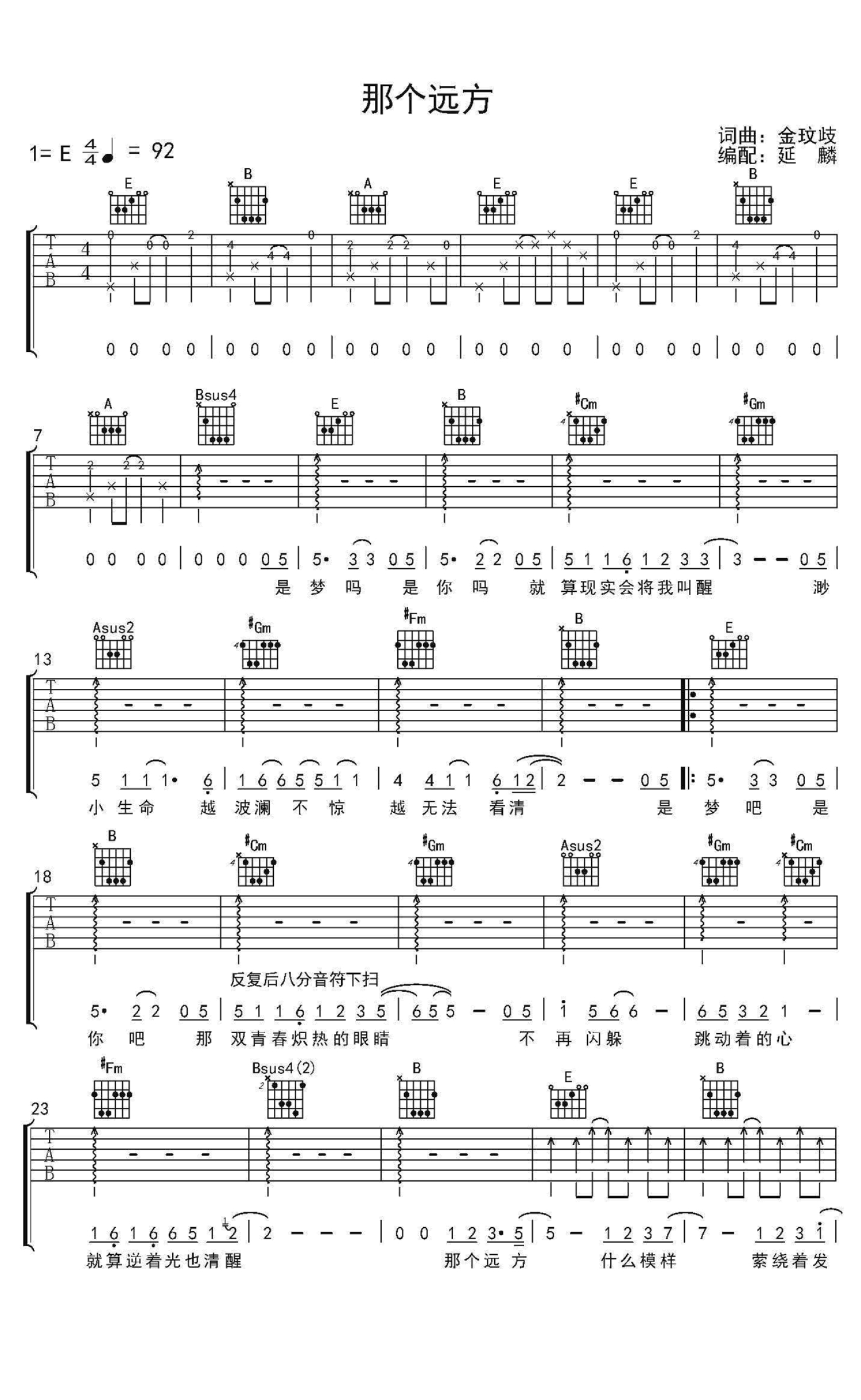 曲谱介绍: 那个远方吉他谱,陈楚生《那个远方》六线谱,图片谱高清版,金玟岐词曲。这首歌曲作为电视剧《旋风少女》片尾曲,受到歌迷朋友的喜爱,