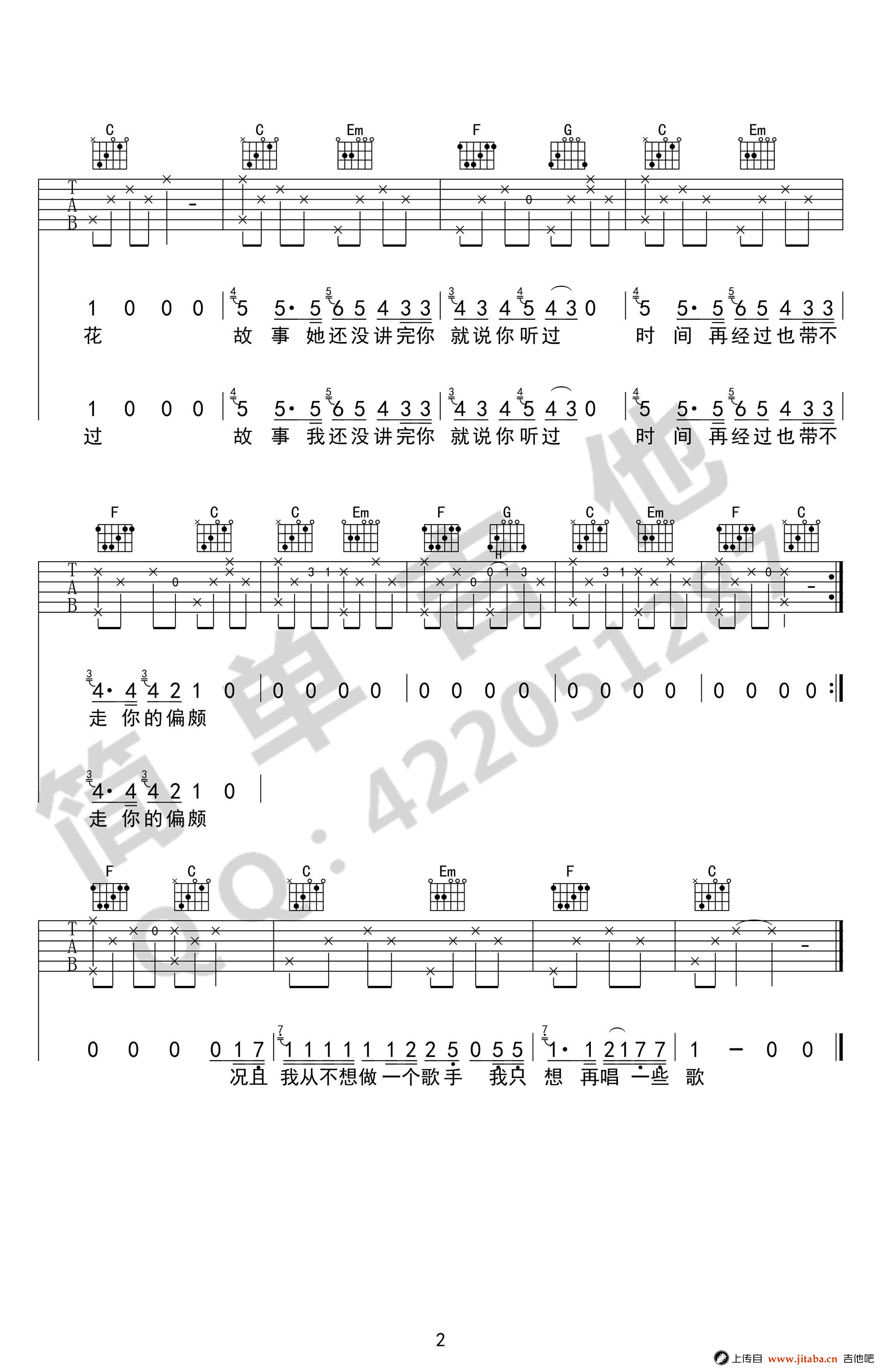 曲谱介绍: 花粥《碌碌》吉他谱,C调指法完美简单版,高清弹唱图片谱,花粥用她慵懒的嗓音,随性的风格,真实的情感,唱出来最简单又最直接的歌。碌碌六线谱,简单吉他出品,91吉他谱网站上传。