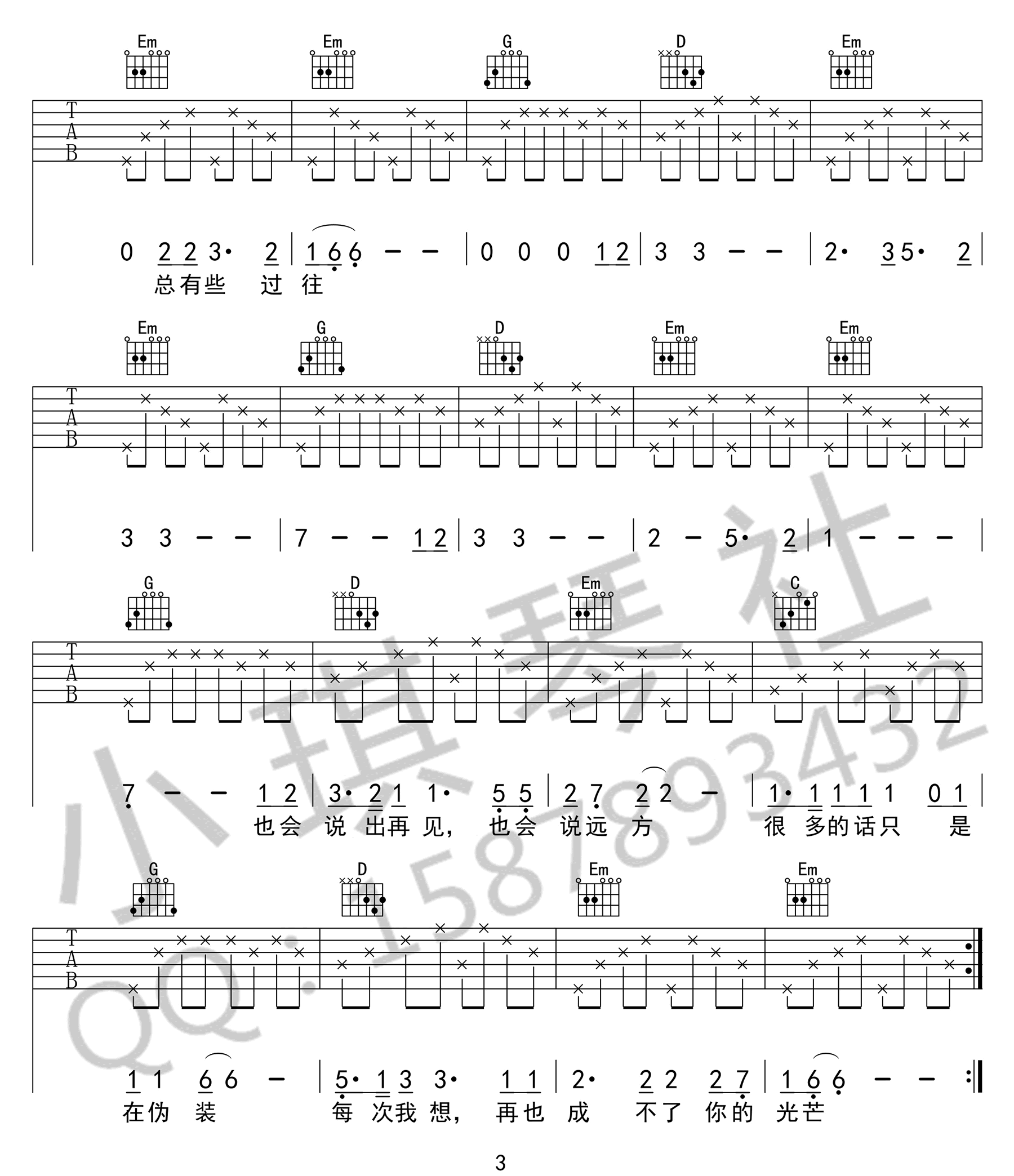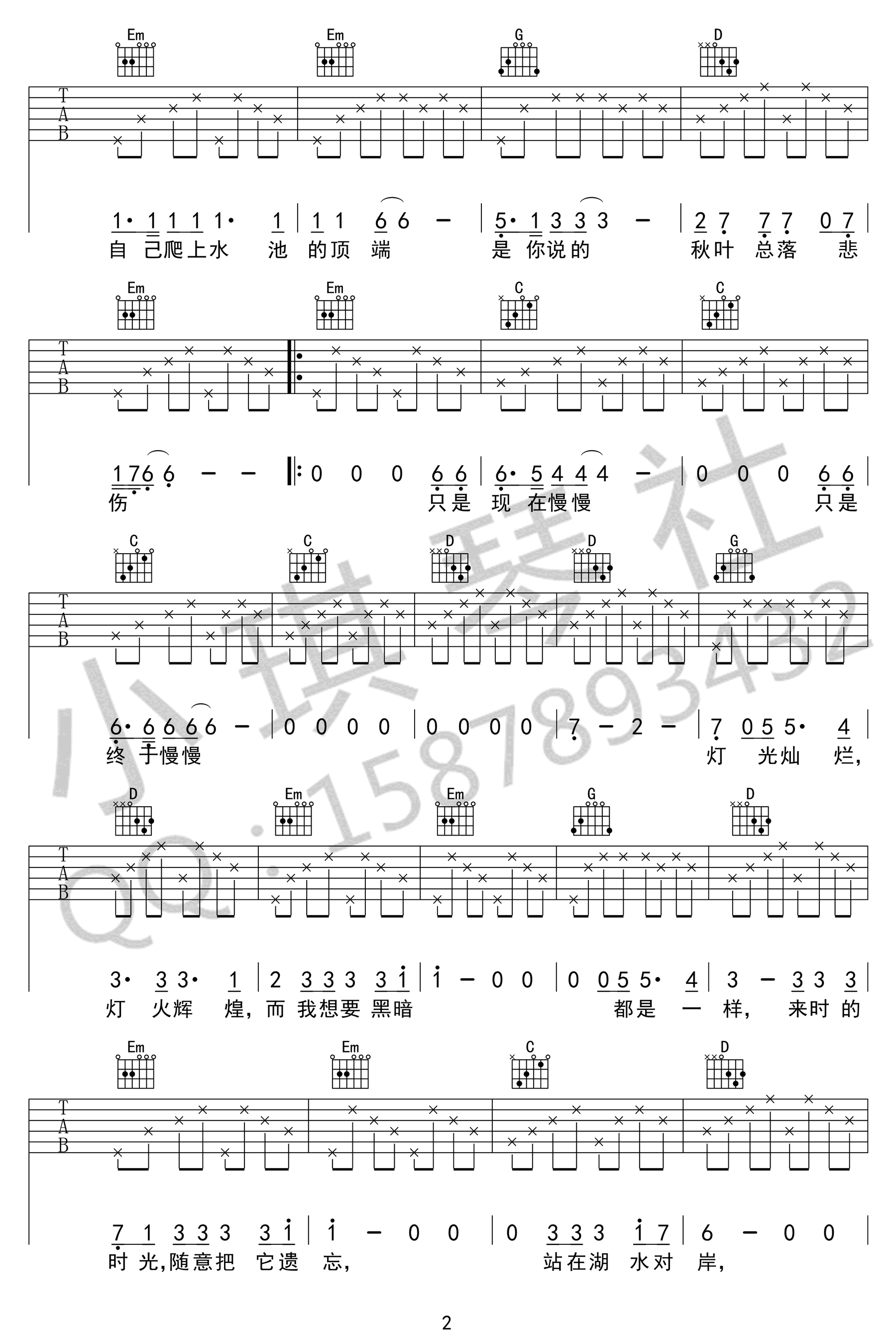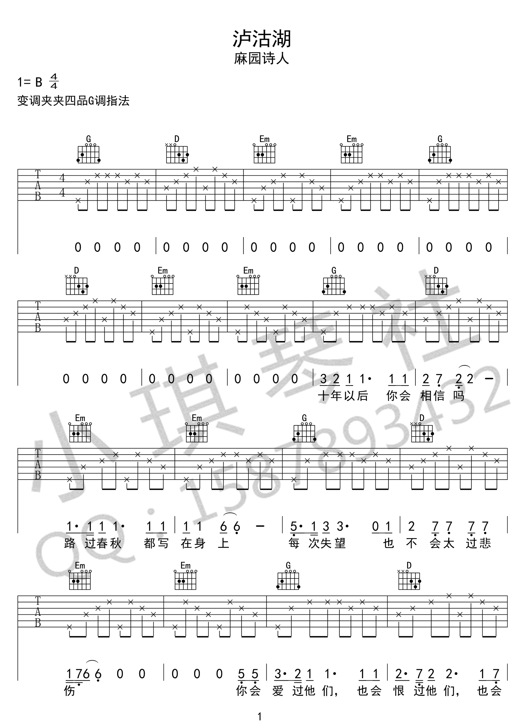 曲谱介绍: 吉他谱介绍:泸沽湖吉他谱,麻园诗人演唱的一首歌曲,4/4拍的节奏,这首歌曲的原调为B调,这里曲谱采用了G调指法进行编配,演唱时夹变调夹4品可回到原调,也可根据个人实际嗓音情况选择。曲谱由琴谱网更新上传,共3张高清图片弹唱吉他谱例,来源于@小琪琴社编配出品。这是一首前面3分钟娓娓道来的英式民谣那种感觉的东西,生命中遇到最大的离别,是否觉得每一片秋叶都在你心底刻着失去。