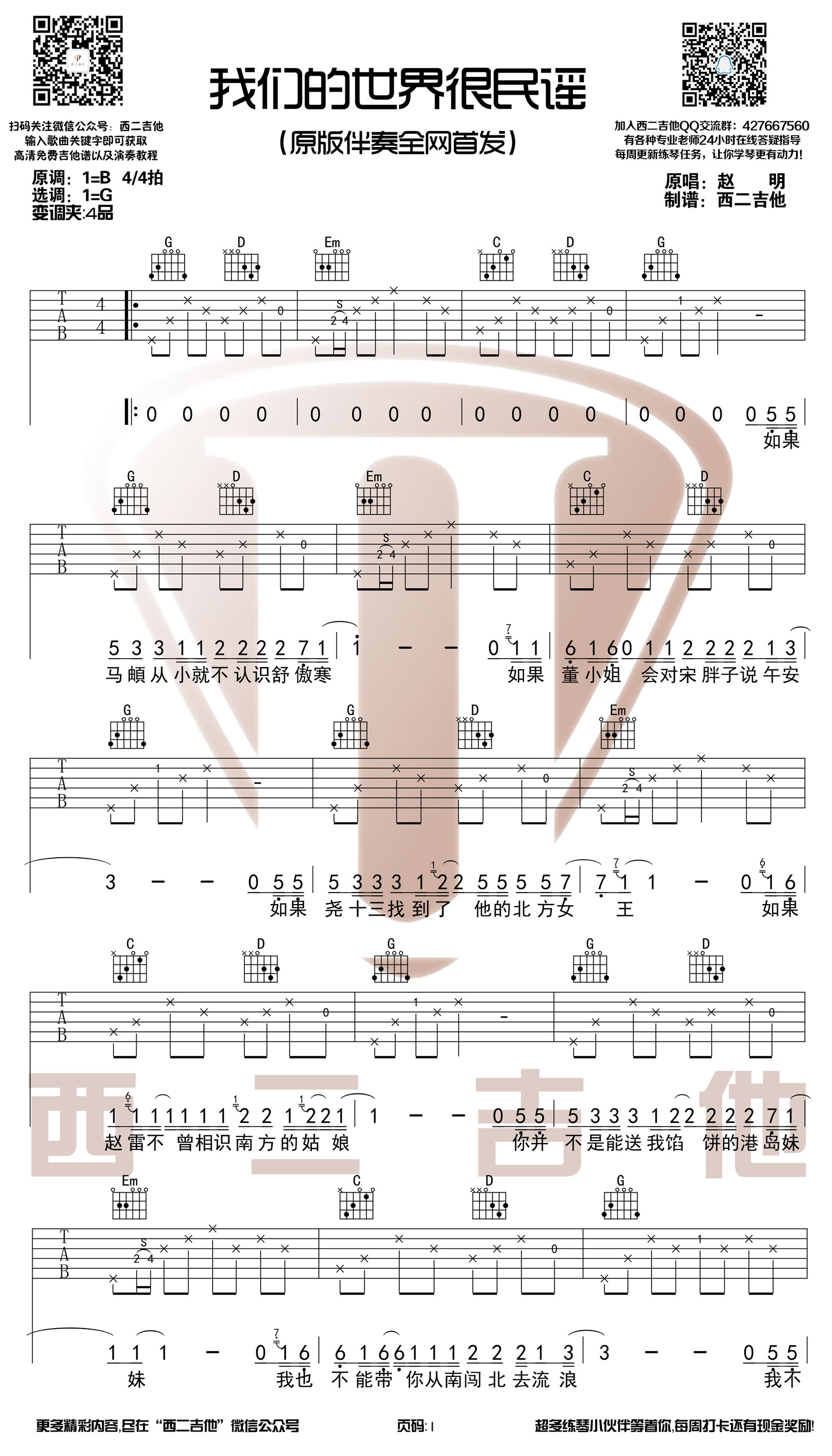 我们的世界很民谣吉他谱 - 赵明 - 吉他弹唱谱 - 原版