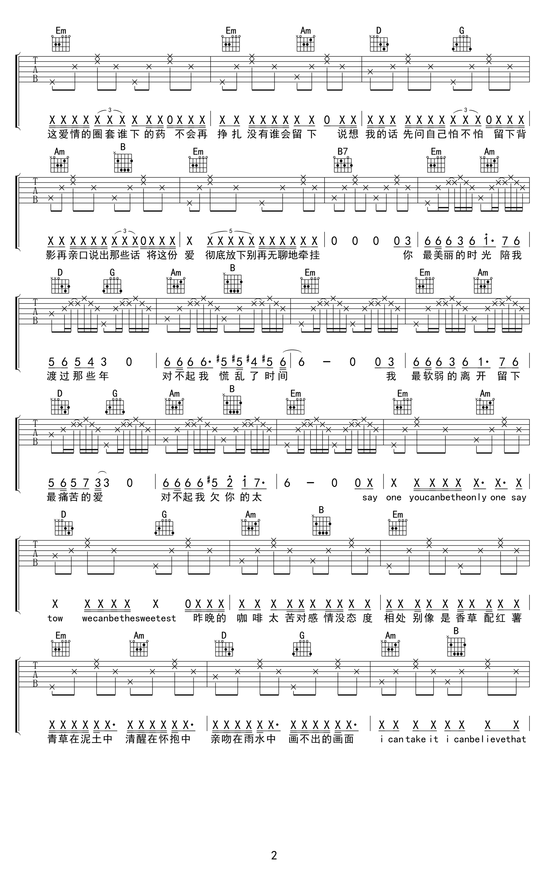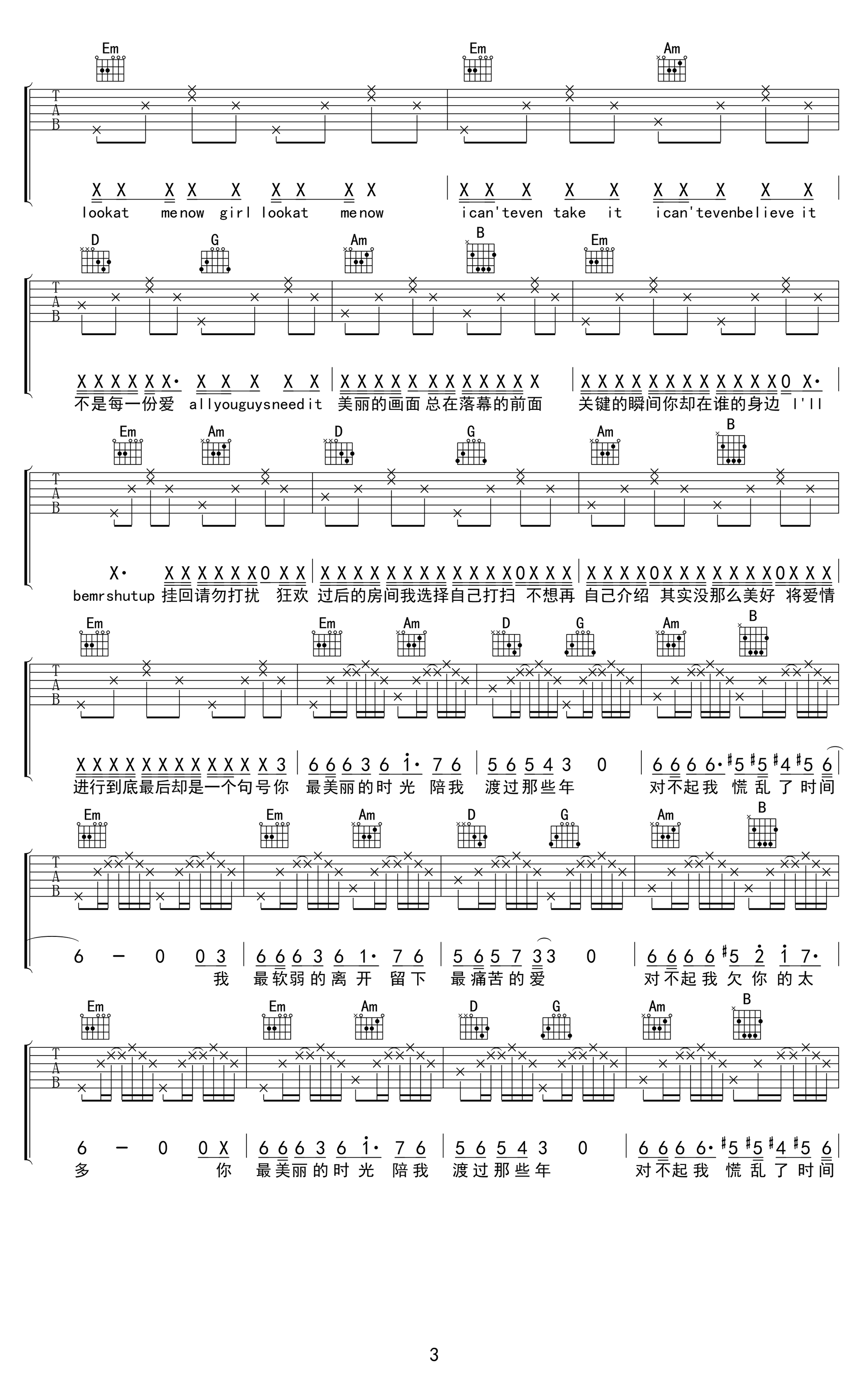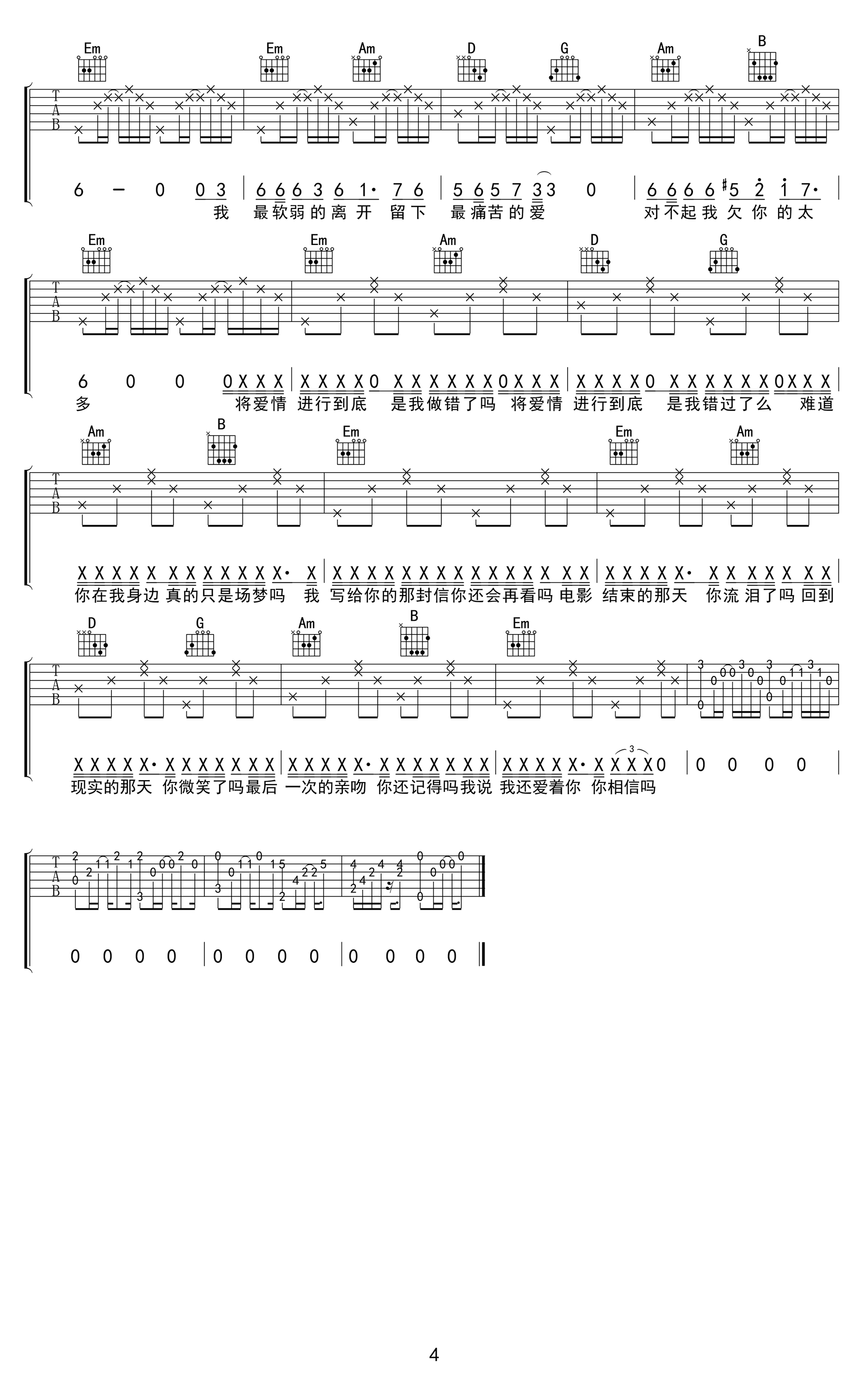 我还爱着你吉他谱 - MIC男团 - G调吉他弹唱谱