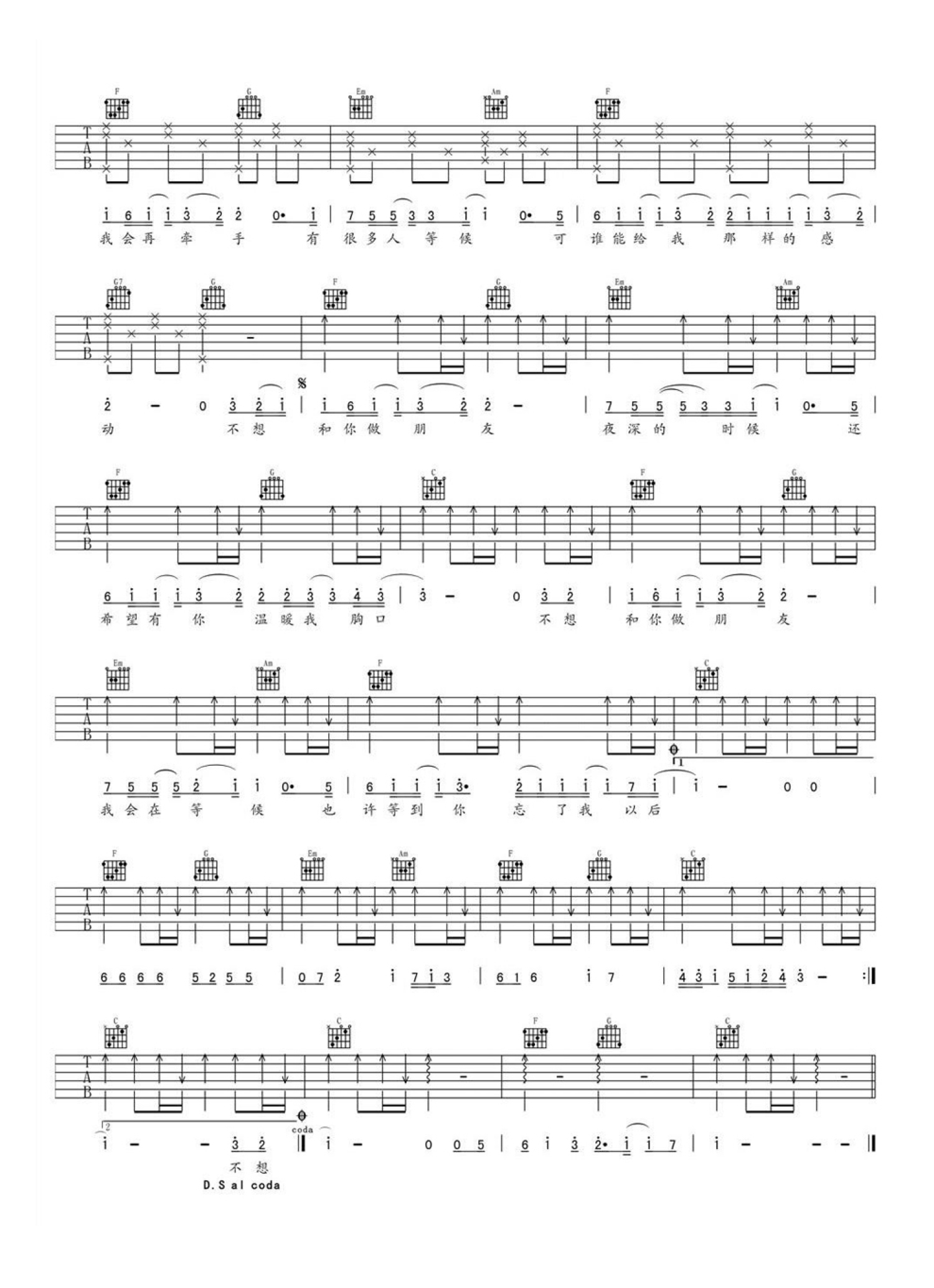 当前位置:琴谱网>吉他弹唱>不想和你做朋友