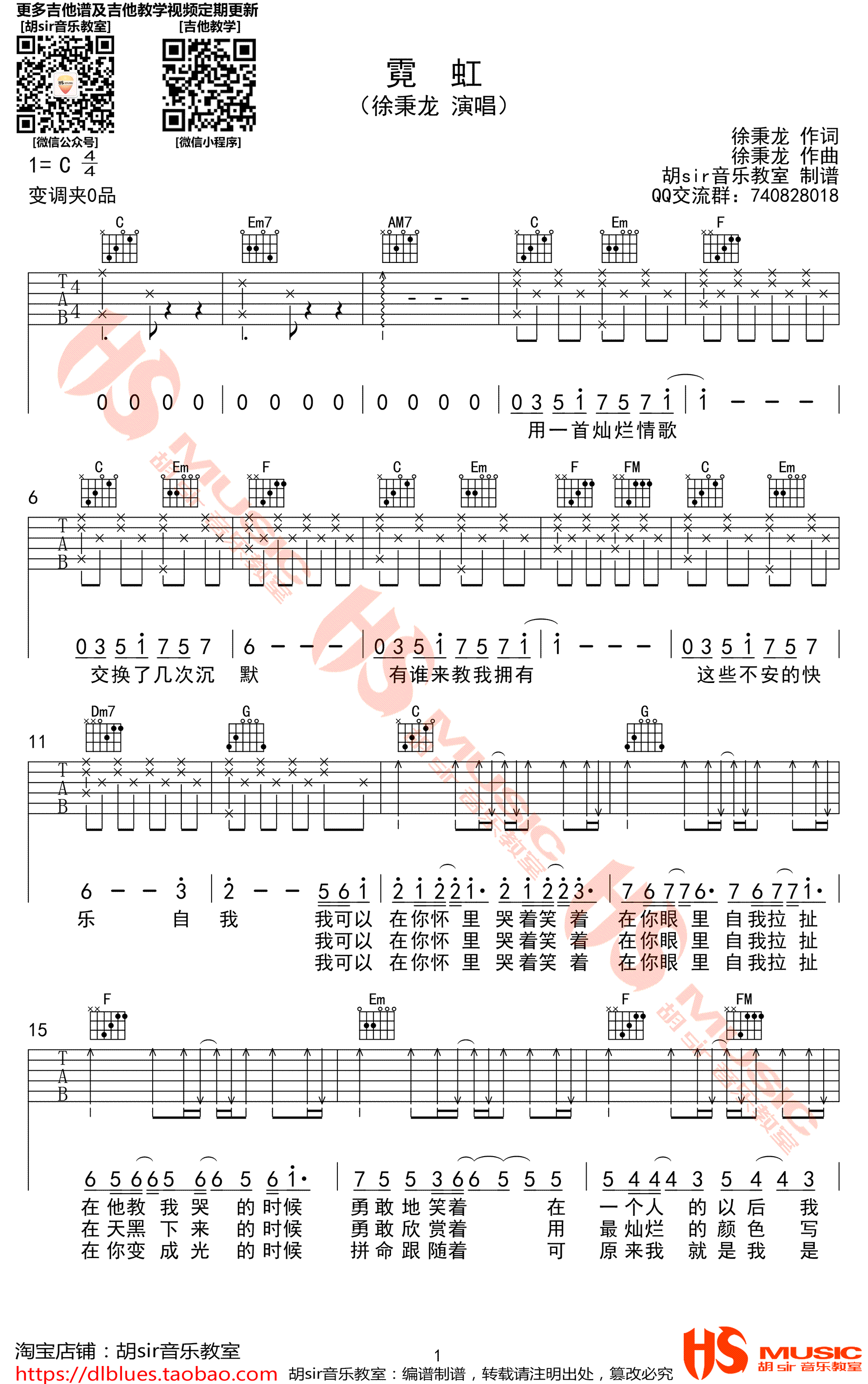 霓虹吉他谱 - 徐秉龙 - C调吉他弹唱谱