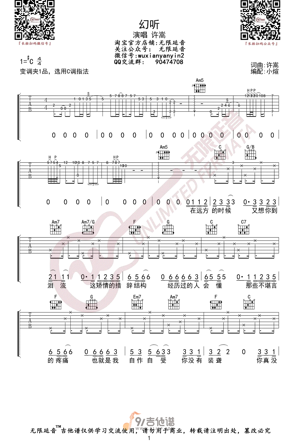 幻听吉他谱 - 许嵩 - C调吉他弹唱谱 - 原版