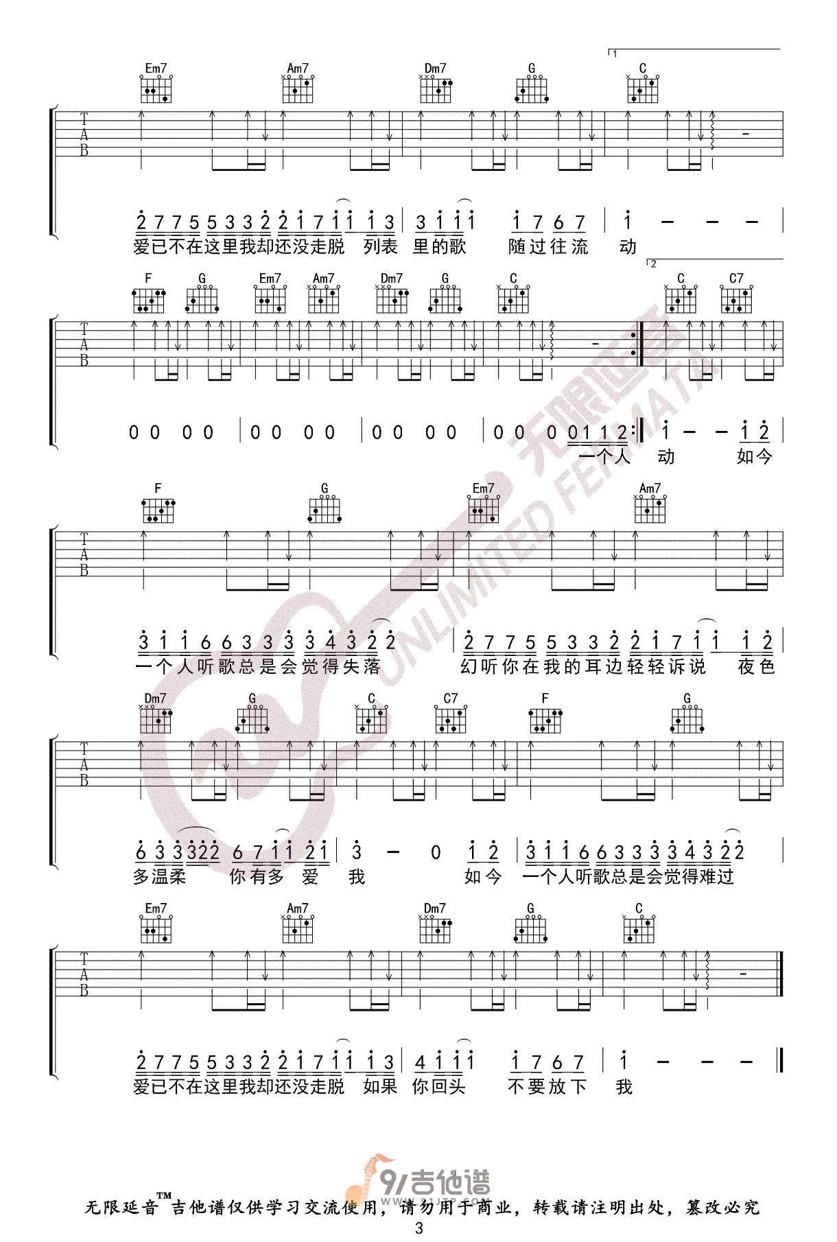 当前位置:琴谱网>吉他弹唱>幻听