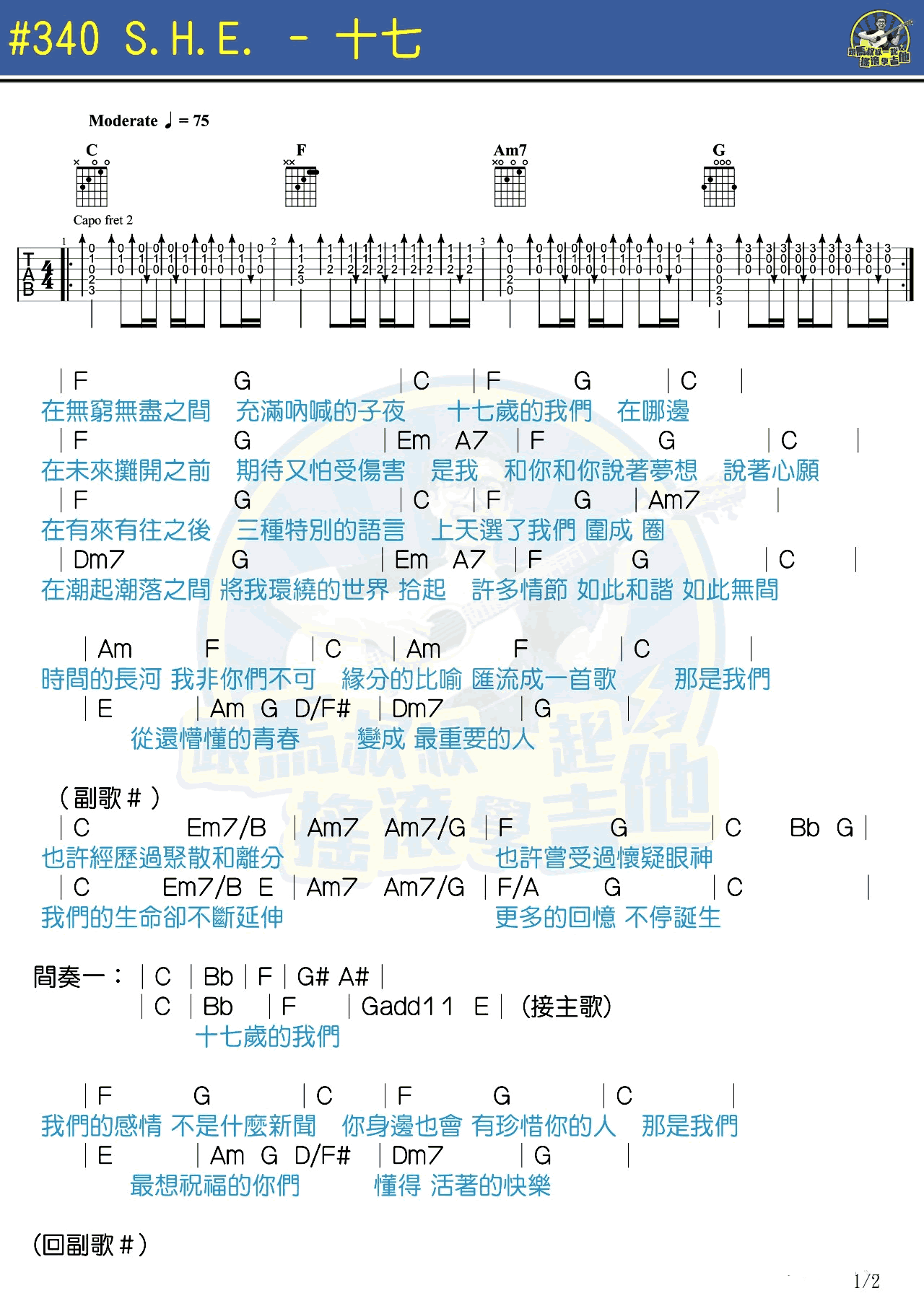 十七吉他谱 - SHE - 吉他弹唱谱