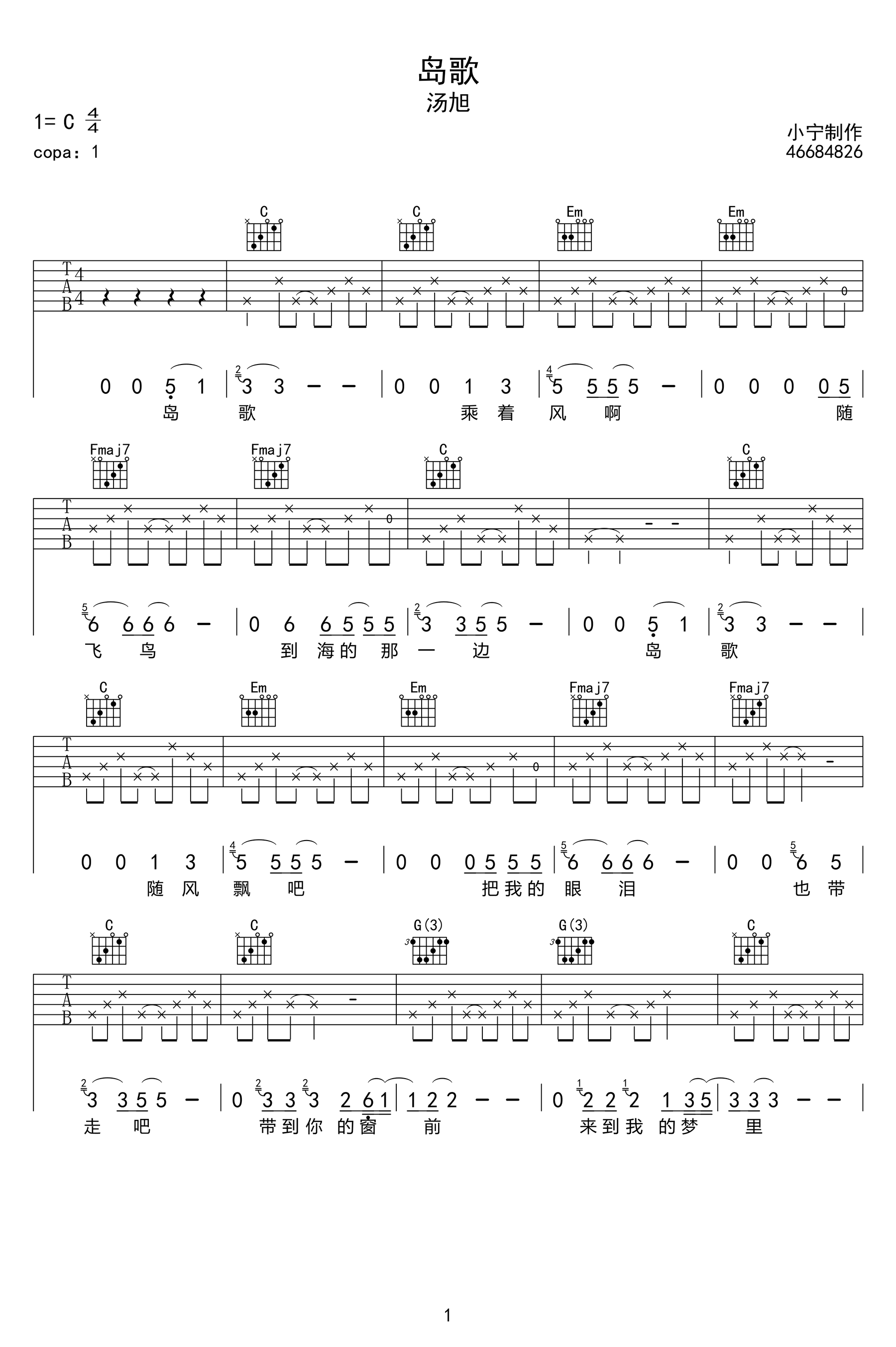 岛歌吉他谱 - 汤旭 - C调吉他弹唱谱