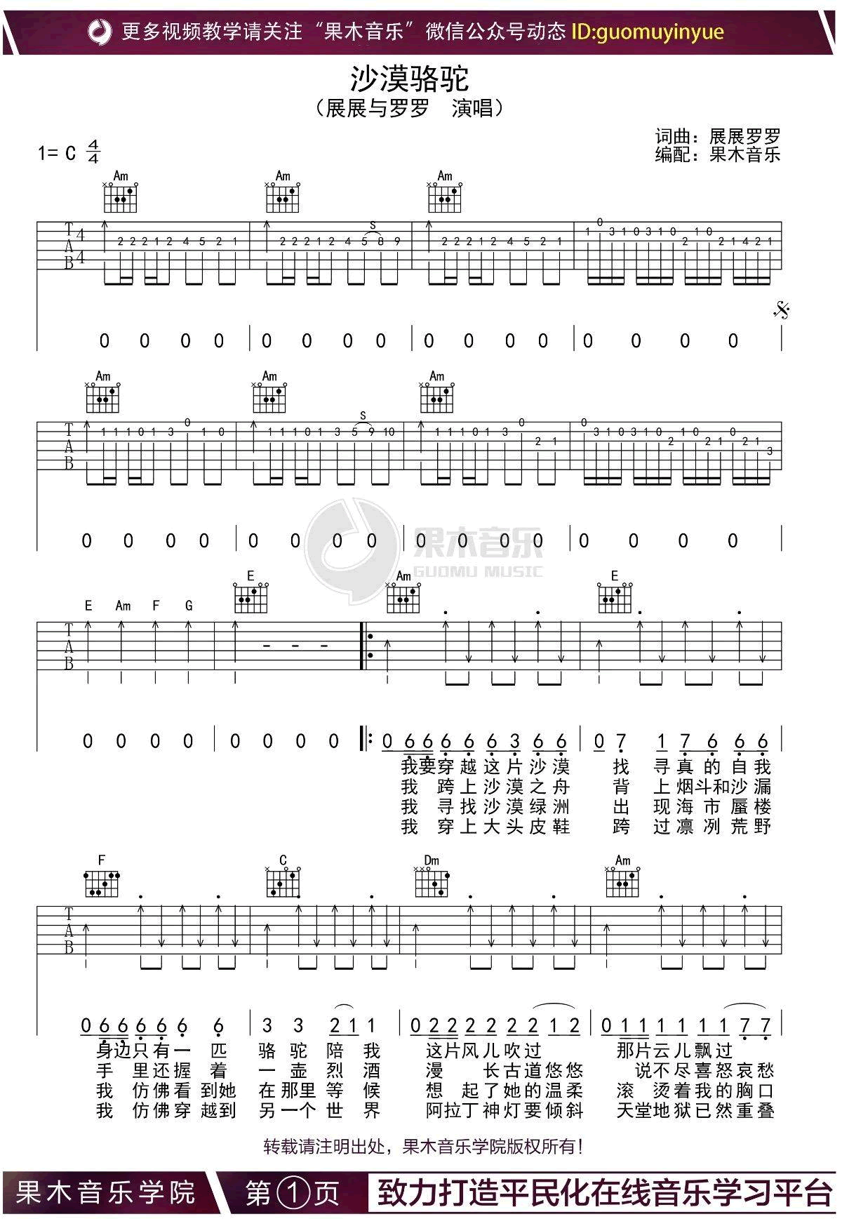 沙漠骆驼吉他谱 - 展展与罗罗 - C调吉他弹唱谱