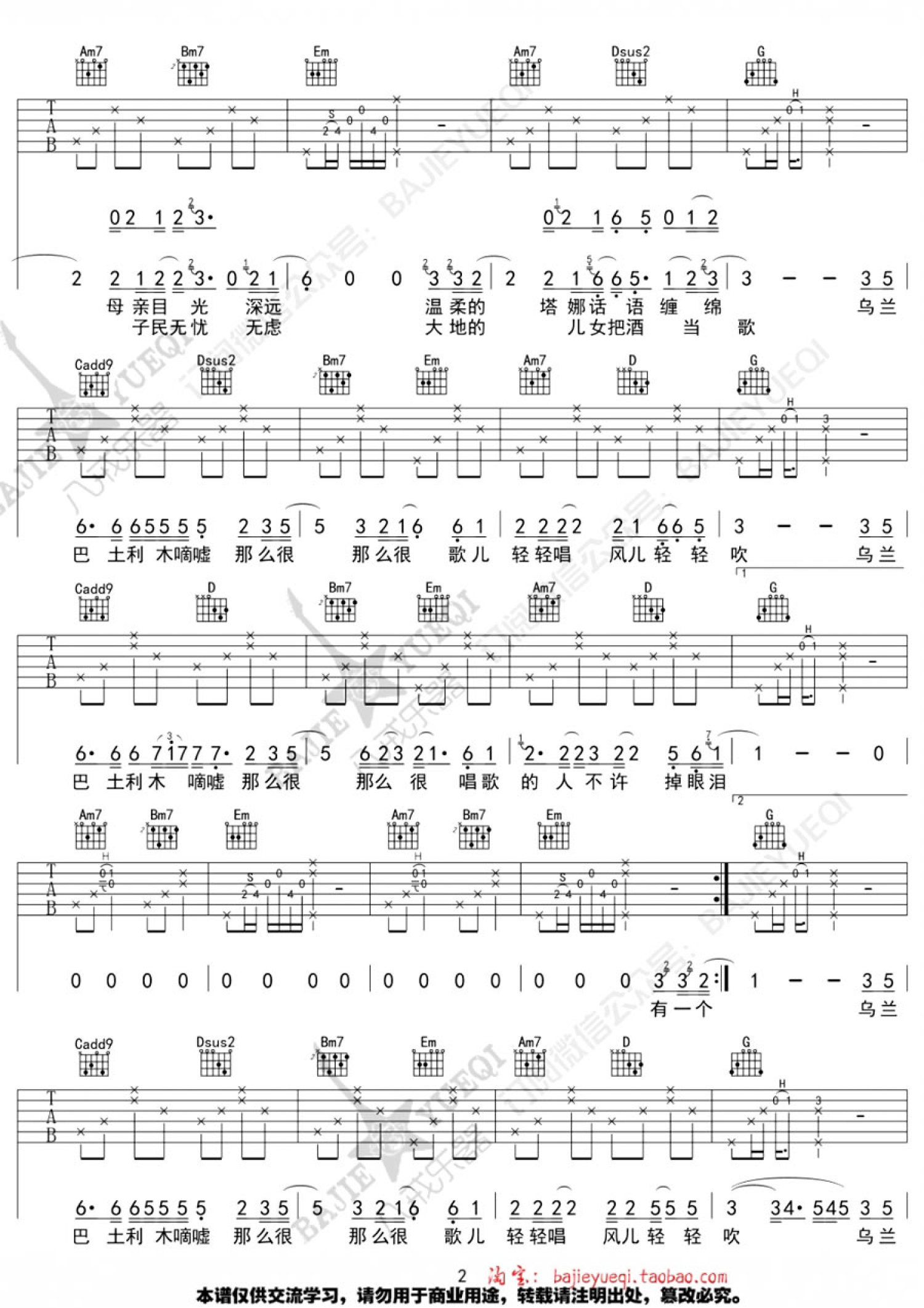 吉他弹唱G调来源:八戒乐器2155 浏览2020-01-03 01:16发布图谱共3页