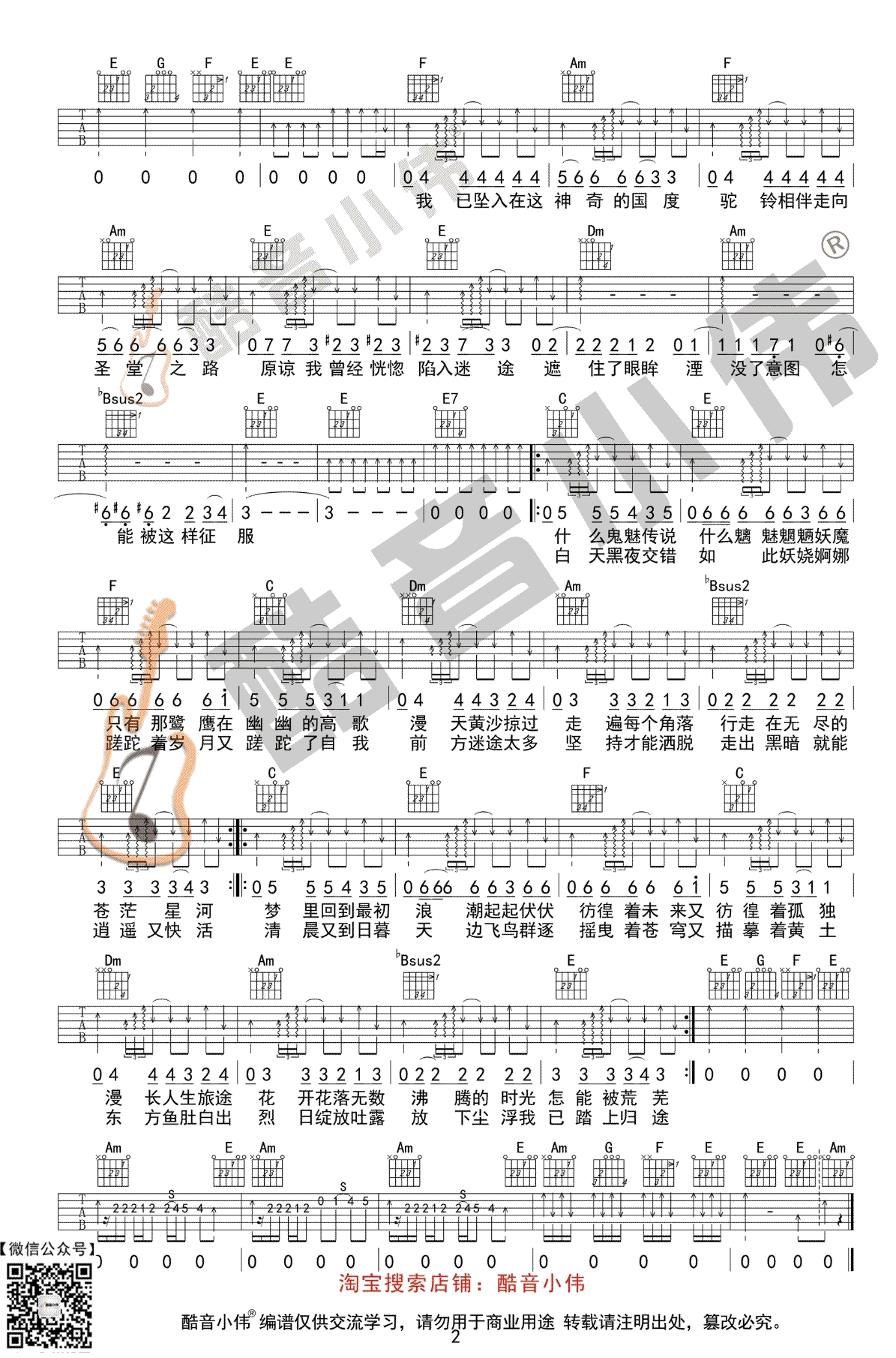 当前位置:琴谱网>吉他弹唱>沙漠骆驼