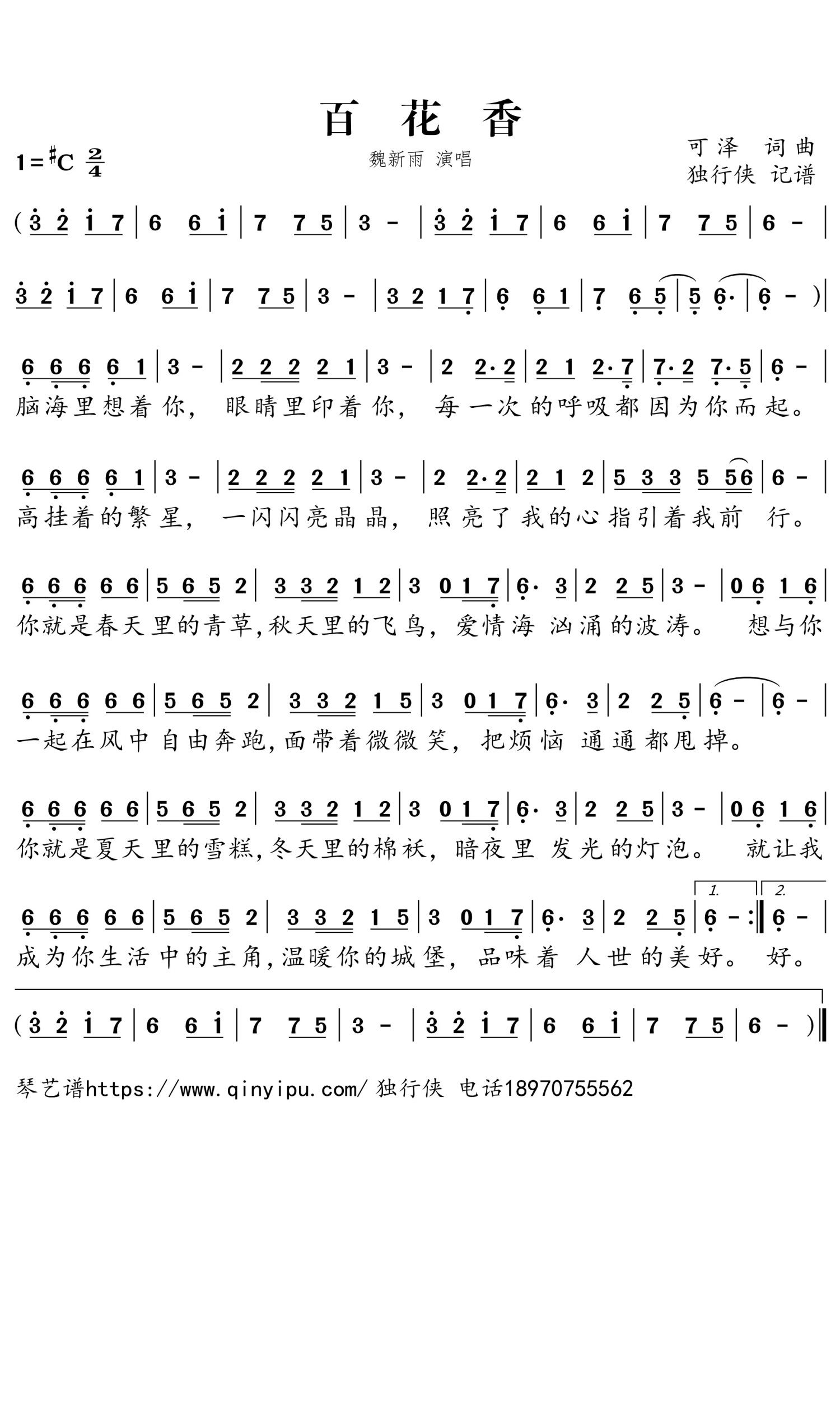 曲谱介绍: 魏新雨《百花香》歌词_简谱