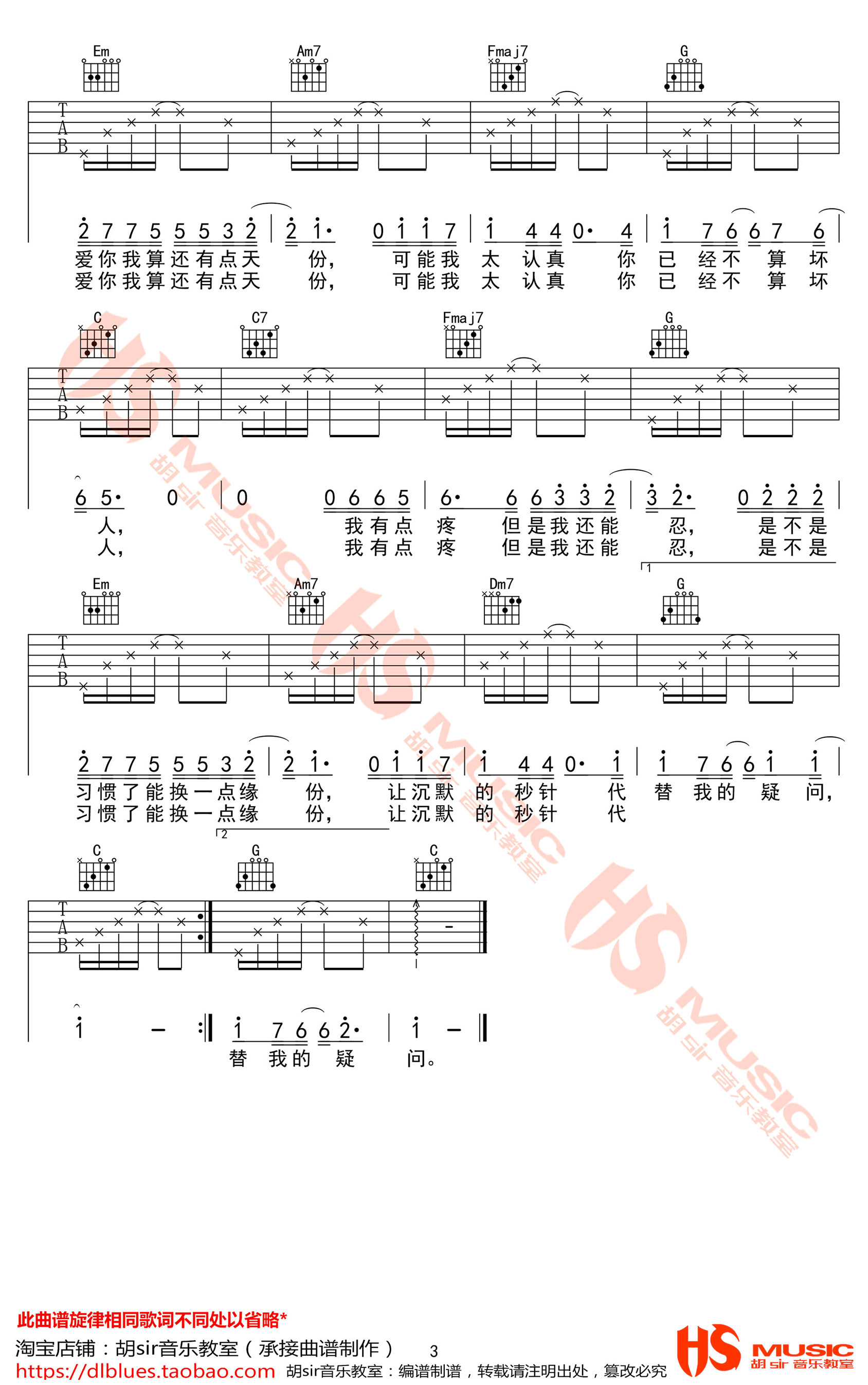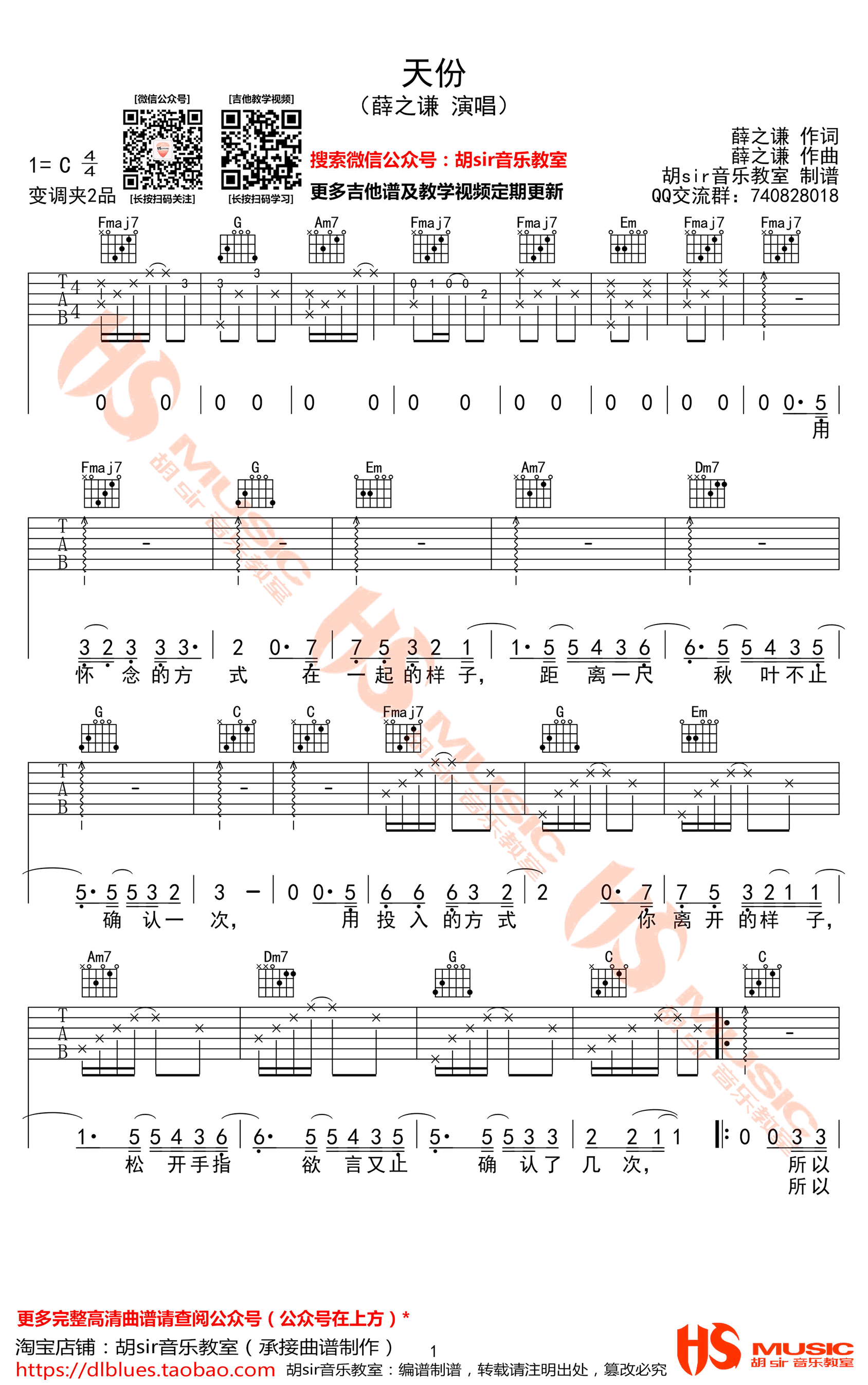曲谱介绍: 天份吉他谱,薛之谦演唱的新歌,绵延平淡,却暗流涌动。天份吉他弹唱谱,C调六线谱,变调夹夹二品,高清图片谱。感谢胡sir编配分享,91吉他谱网站推荐上传。 薛之谦在《无限歌谣季》中即兴创作的寥寥数句现在终于推出了完整成品。我们都在爱情里少一点天份,所以才跌跌撞撞满身伤痕。希望每个人都有天份,找到那个对的人。