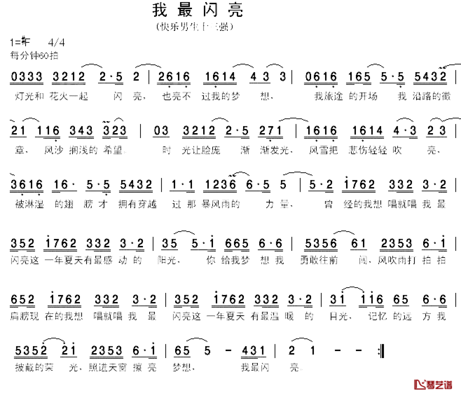 曲谱介绍: 群星《我最闪亮》歌词_简谱