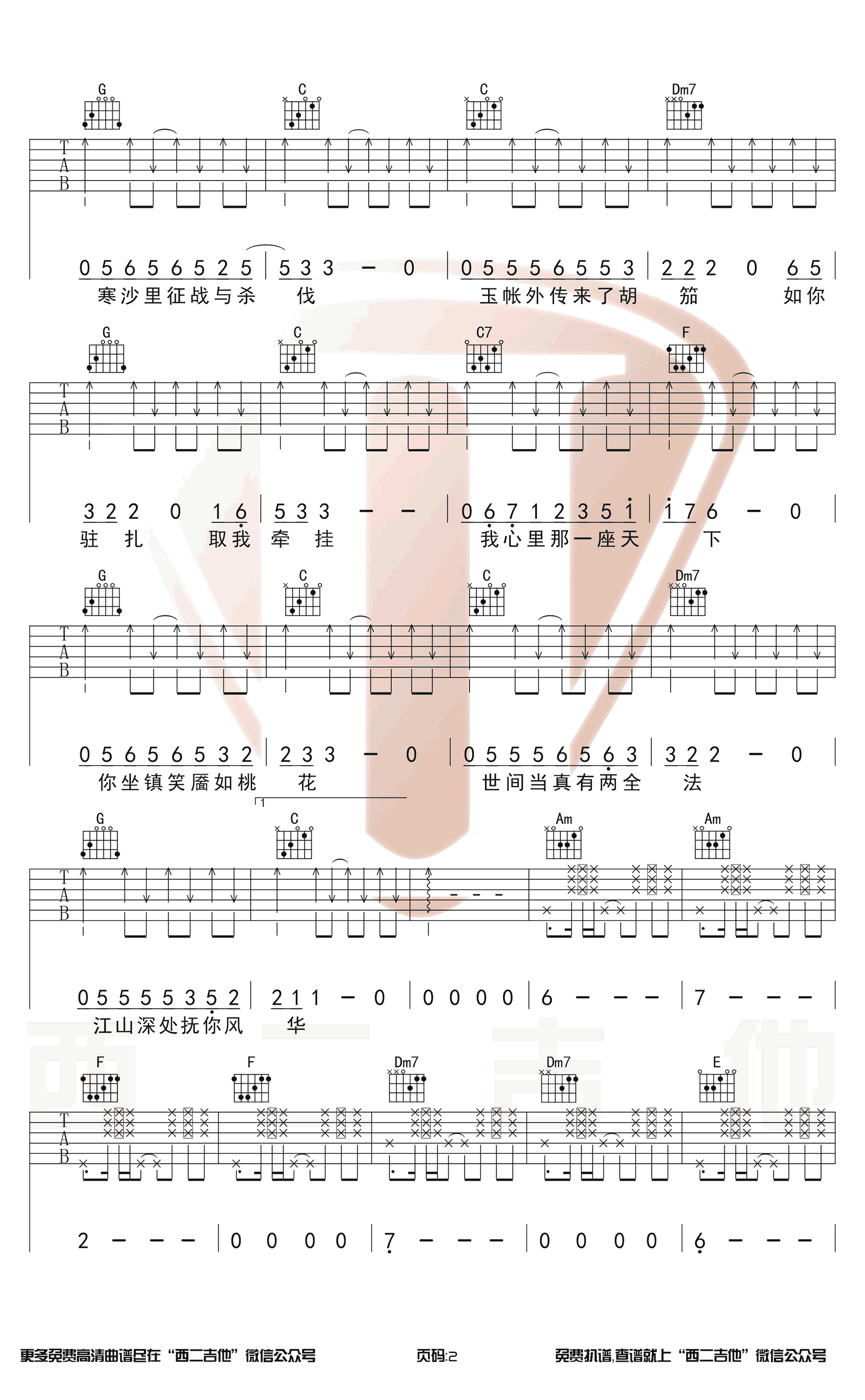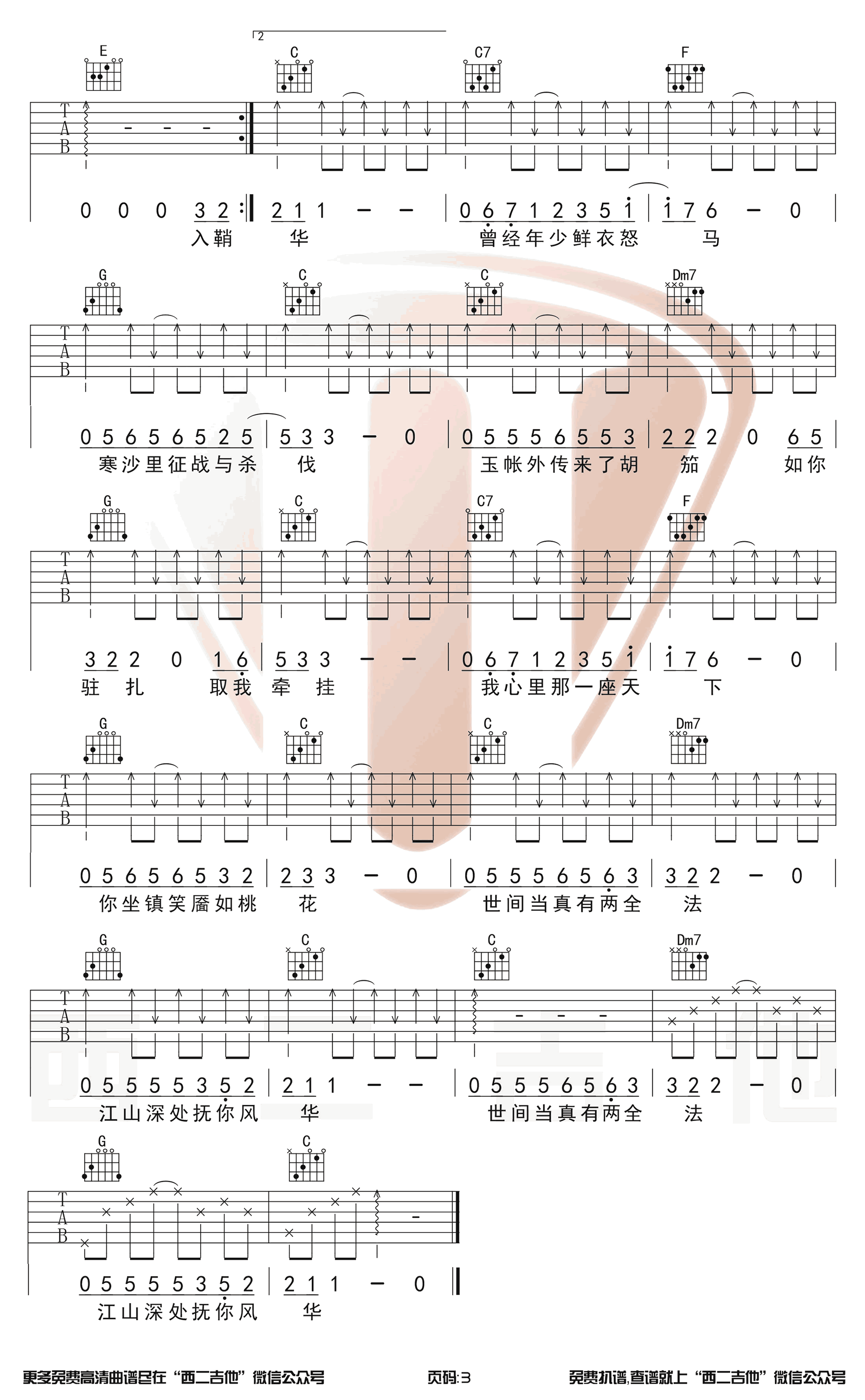 曲谱介绍: 绝代风华吉他谱,许嵩为《天下3》创作的一首古风主题曲,绝代风华六线谱,原调升F,选用C调指法编配,变调夹夹第五品。西二吉他出品,91吉他谱网站上传分享。 暌违数年的许氏中国风惊艳回归,再现江湖,绝代风华是情人,漫天的江山风景抵不过你那一抹笑靥;这绝代风华也是天下,是战场的金戈铁马,是信步山野诗酒花。