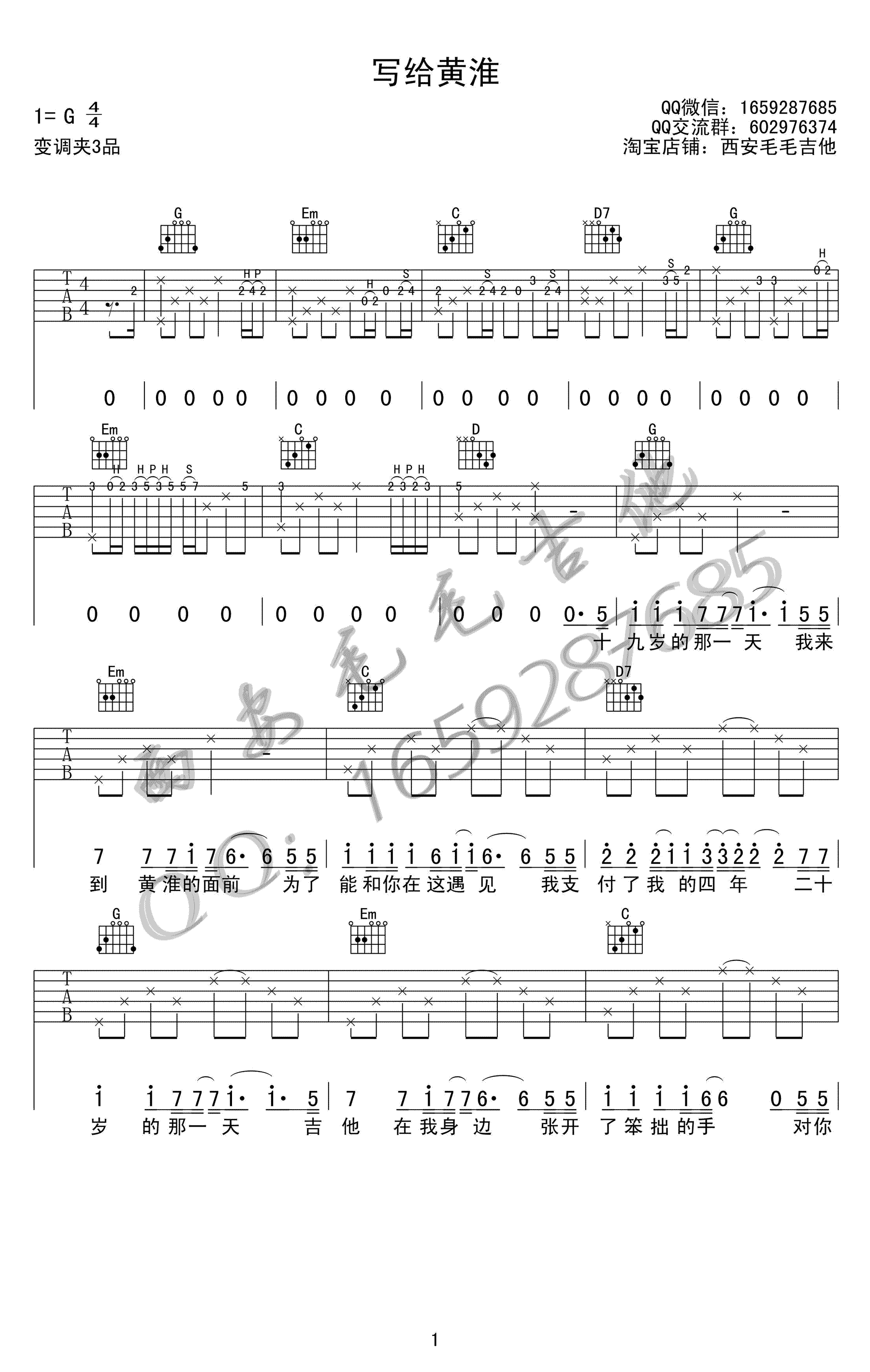 当前位置:琴谱网>吉他弹唱>写给黄淮