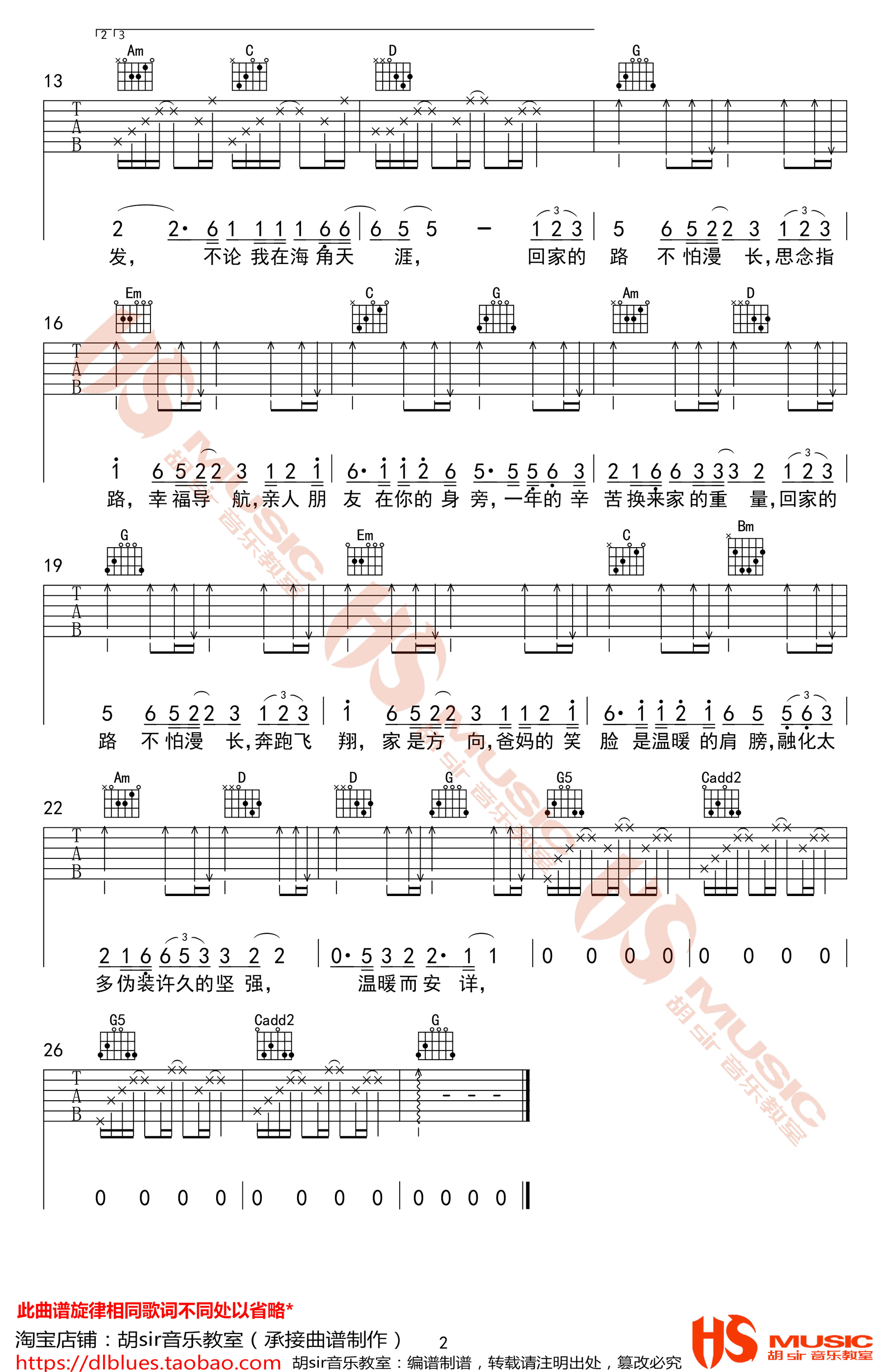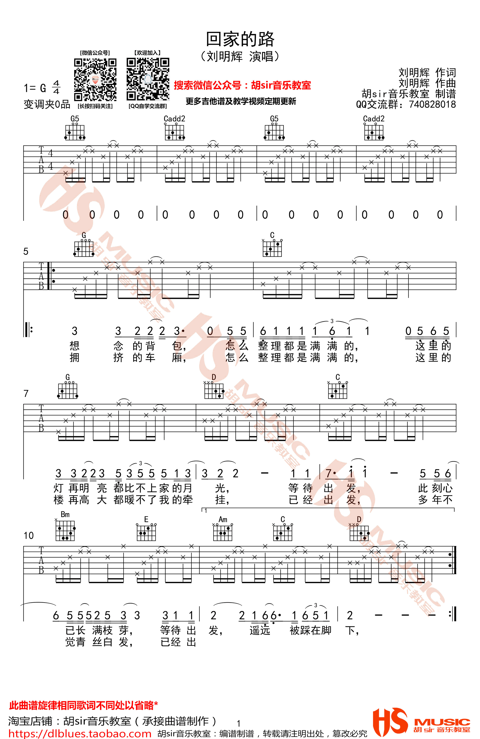 曲谱介绍: 回家的路吉他谱,刘明辉演唱,G调编配,一首朴实温暖的歌曲,回家的路六线谱,高清弹唱图片谱,感谢胡sir音乐教室出品,91吉他谱网站推荐分享。